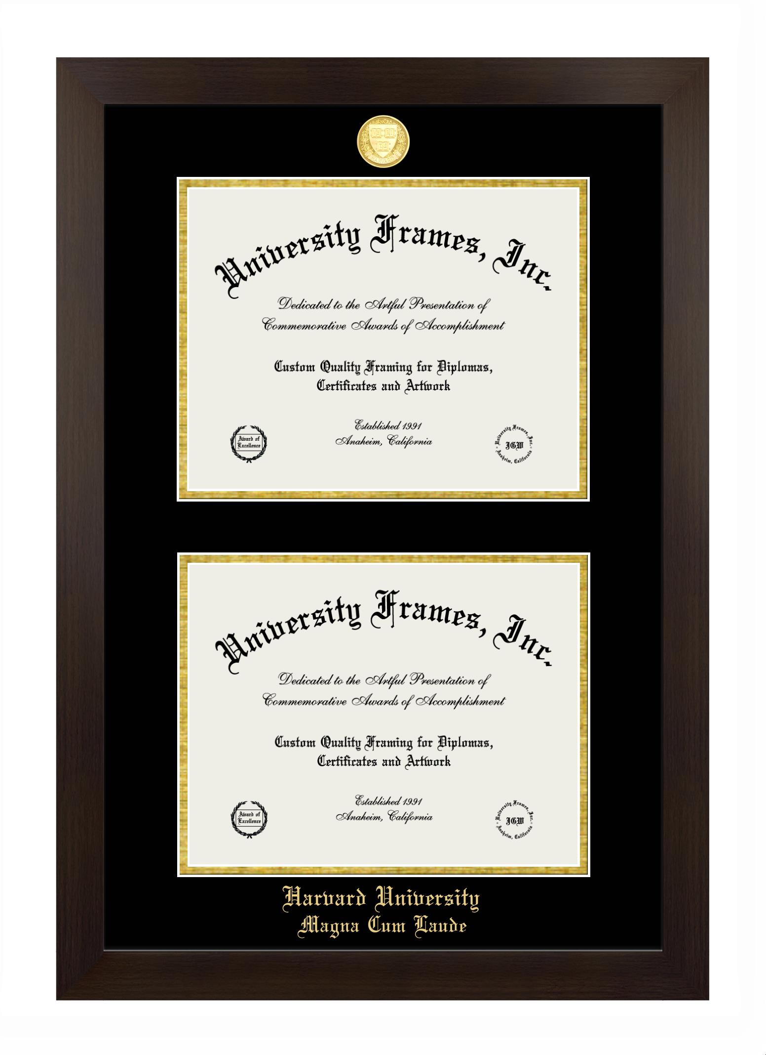 Showcase your achievement with a professional Harvard University Magna Cum Laude diploma frame. We offer officially licensed custom diploma frames that have the original Harvard University Magna Cum Laude seal. Our degree frames make great graduation gifts. All our frames are handcrafted to meet your style and preference. Each frame is carefully inspected to achieve the highest quality standards and precision. You can easily customize your college diploma frame with our online design tool. Customize your diploma frame now!