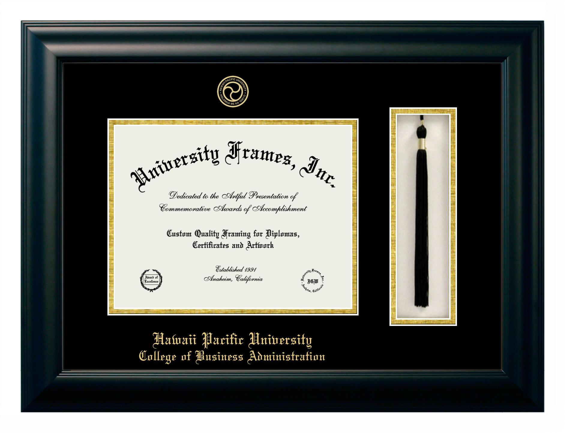 Showcase your achievement with a professional Hawai'i Pacific University College of Business Administration diploma frame. We offer officially licensed custom diploma frames that have the original Hawai'i Pacific University College of Business Administration seal. Our degree frames make great graduation gifts. All our frames are handcrafted to meet your style and preference. Each frame is carefully inspected to achieve the highest quality standards and precision. You can easily customize your college diploma frame with our online design tool. Customize your diploma frame now!