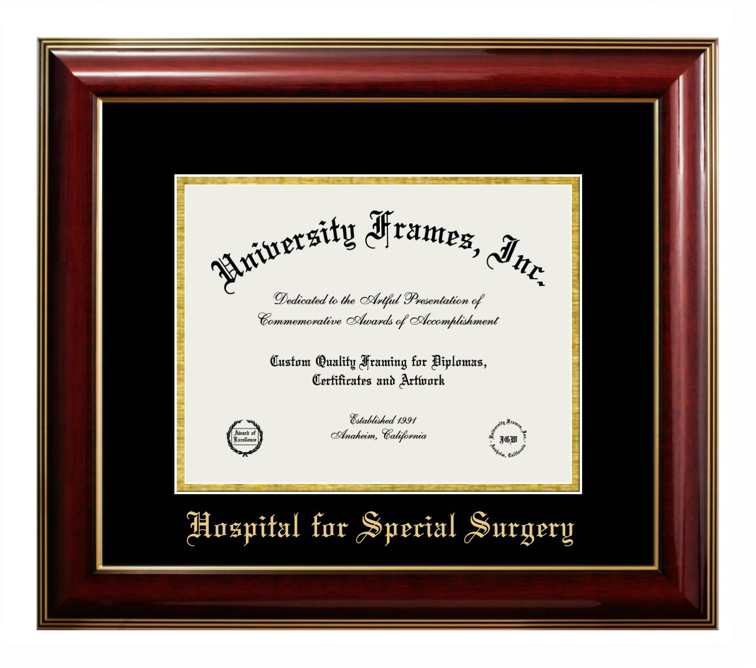 Showcase your achievement with a professional Hospital for Special Surgery diploma frame. We offer officially licensed custom diploma frames that have the original Hospital for Special Surgery seal. Our degree frames make great graduation gifts. All our frames are handcrafted to meet your style and preference. Each frame is carefully inspected to achieve the highest quality standards and precision. You can easily customize your college diploma frame with our online design tool. Customize your diploma frame now!