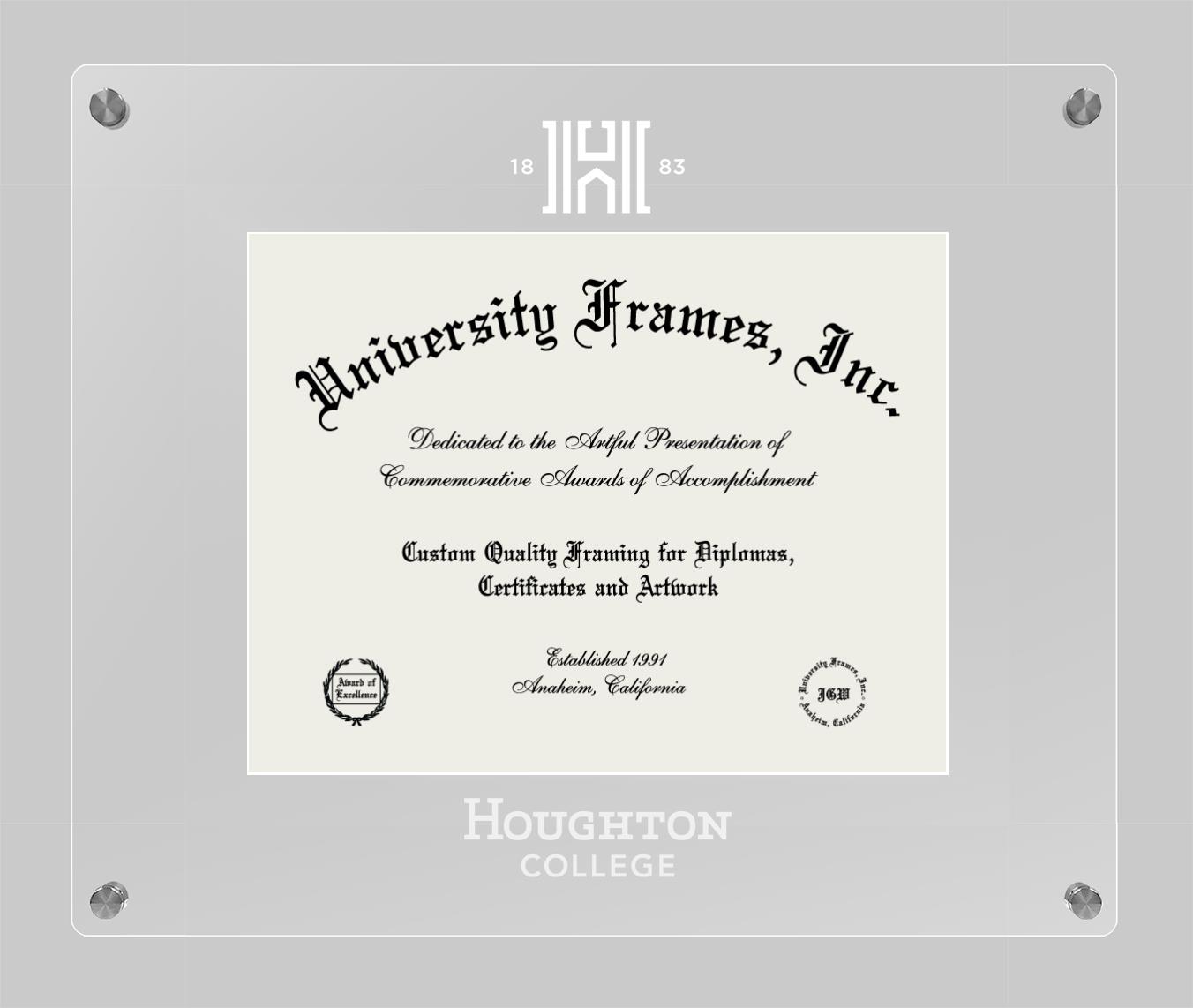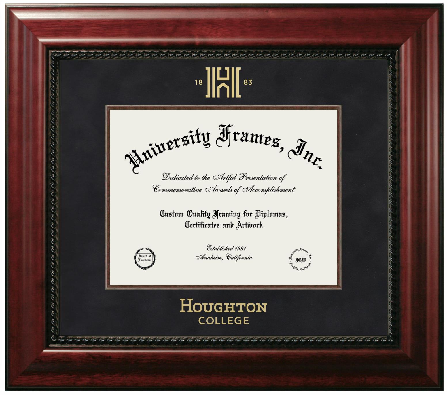 Showcase your achievement with a professional Houghton College diploma frame. We offer officially licensed custom diploma frames that have the original Houghton College seal. Our degree frames make great graduation gifts. All our frames are handcrafted to meet your style and preference. Each frame is carefully inspected to achieve the highest quality standards and precision. You can easily customize your college diploma frame with our online design tool. Customize your diploma frame now!