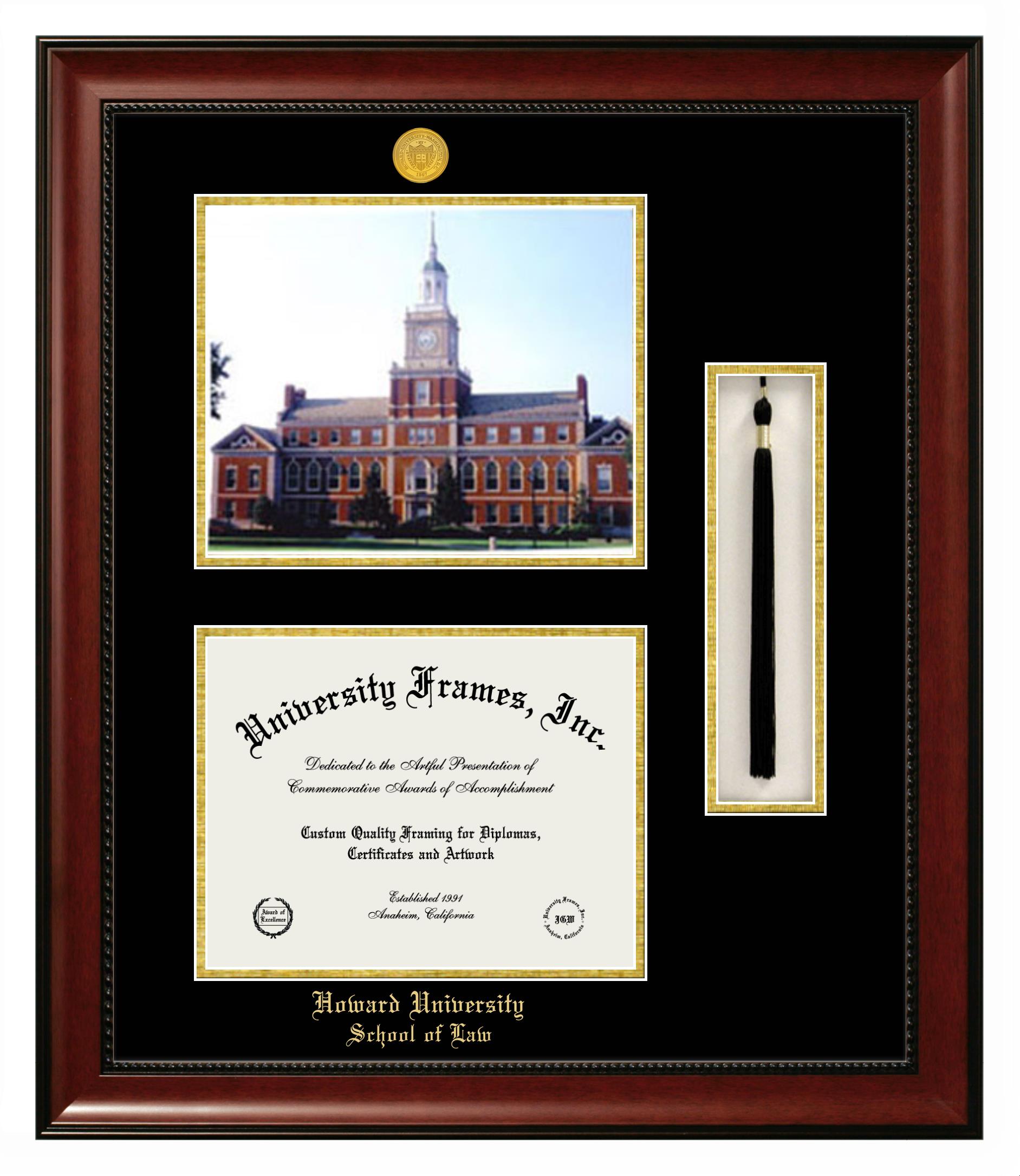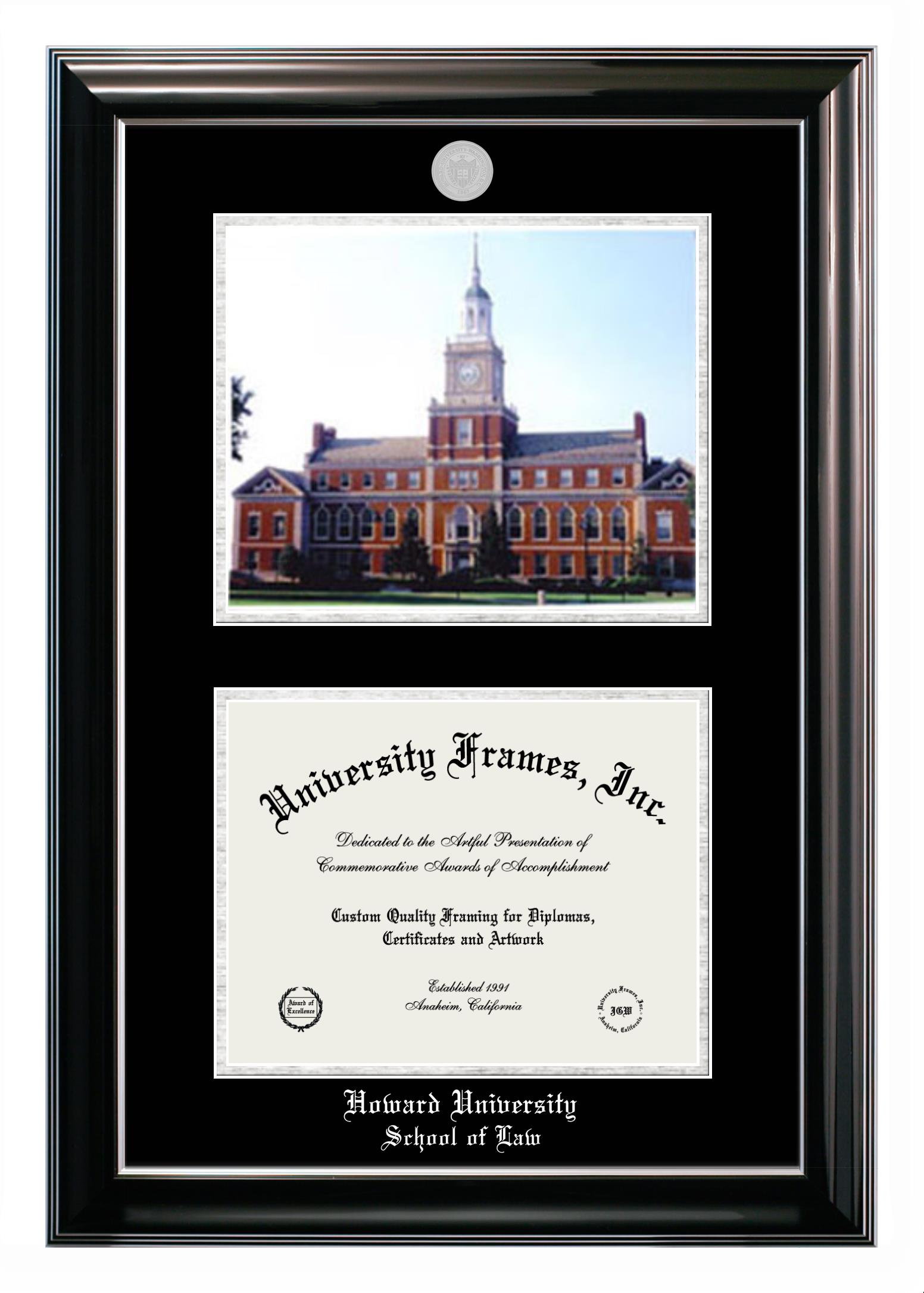 Showcase your achievement with a professional Howard University School of Law diploma frame. We offer officially licensed custom diploma frames that have the original Howard University School of Law seal. Our degree frames make great graduation gifts. All our frames are handcrafted to meet your style and preference. Each frame is carefully inspected to achieve the highest quality standards and precision. You can easily customize your college diploma frame with our online design tool. Customize your diploma frame now!