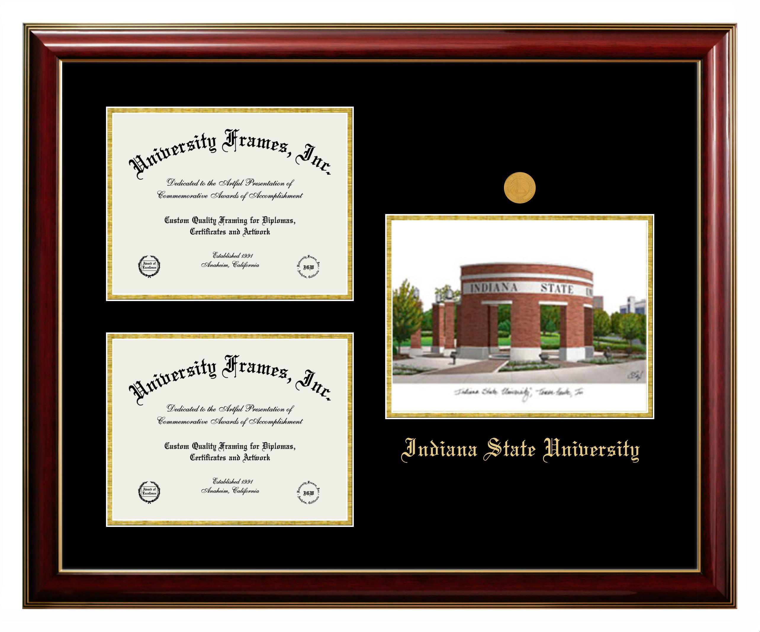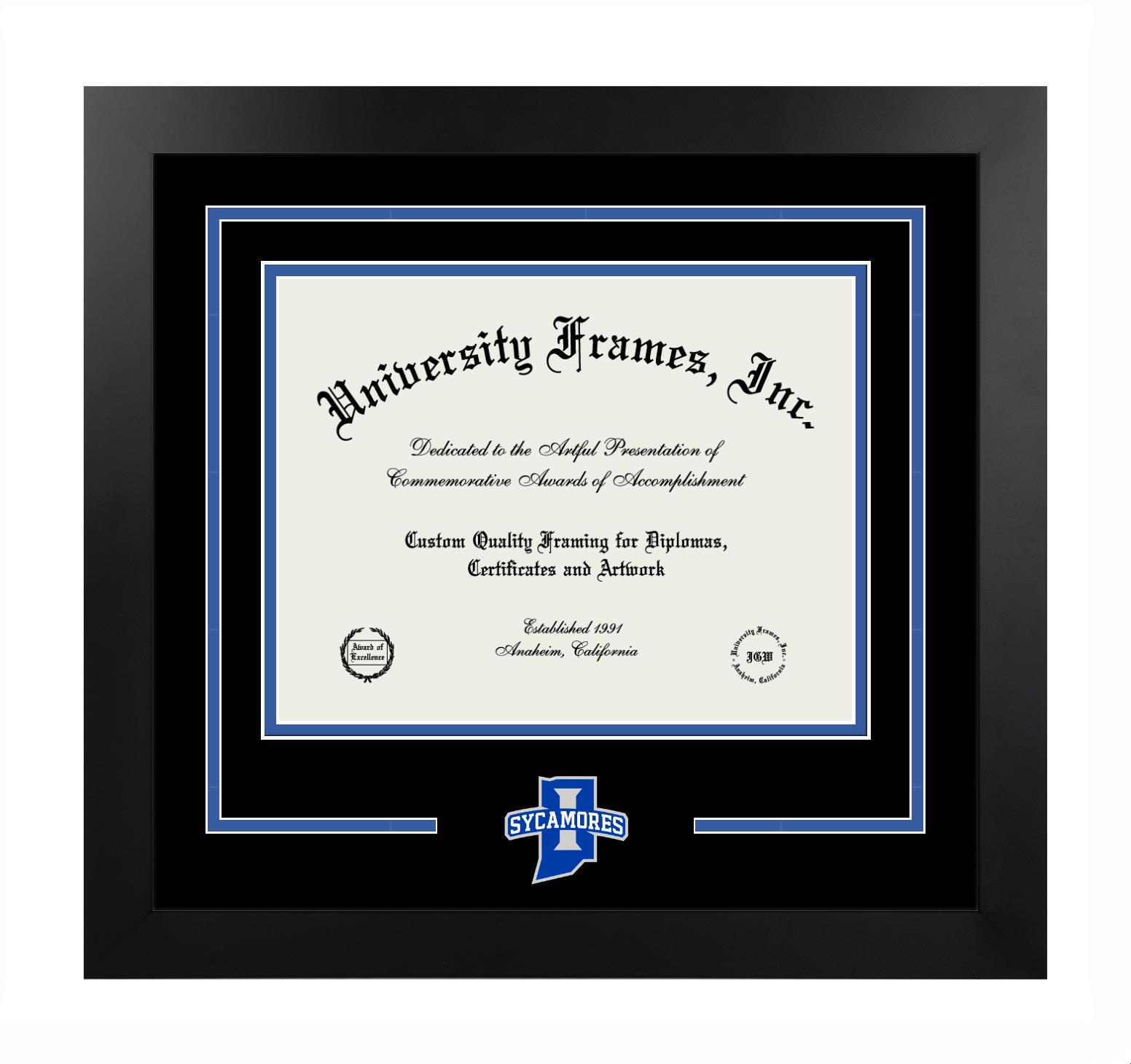 Hey there, Indiana State University grads. Congratulations for your accomplishment! Since you’re here, you must be looking for a professional graduation frame to preserve and showcase your Indiana State University diploma. Or, you may be looking for a diploma frame for another grad. We at University Frames, create the finest diploma frames and are licensed with Indiana State University. Each of our degree frames is handcrafted in the US using the finest hardwood and with an exemplary level of attention to detail. Customize your diploma frame using our easy and intuitive online design tool.