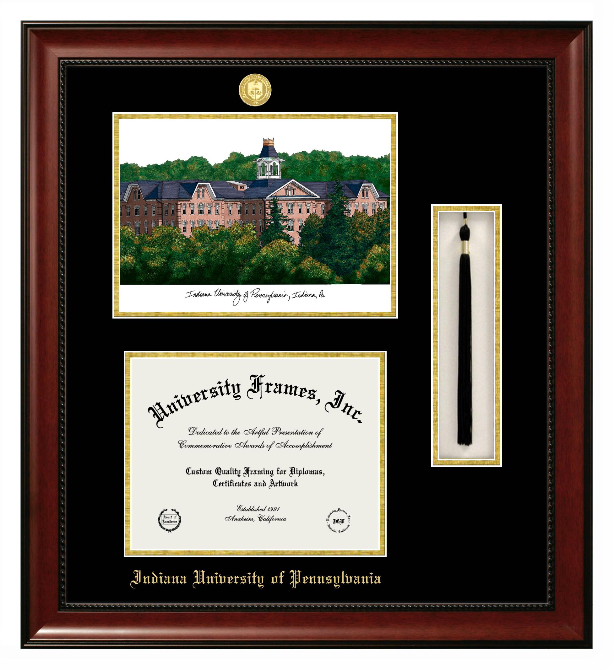 Hey there, Indiana University of Pennsylvania grads. Congratulations for your accomplishment! Since you’re here, you must be looking for a professional graduation frame to preserve and showcase your Indiana University of Pennsylvania diploma. Or, you may be looking for a diploma frame for another grad. We at University Frames, create the finest diploma frames and are licensed with Indiana University of Pennsylvania. Each of our degree frames is handcrafted in the US using the finest hardwood and with an exemplary level of attention to detail. Customize your diploma frame using our easy and intuitive online design tool.