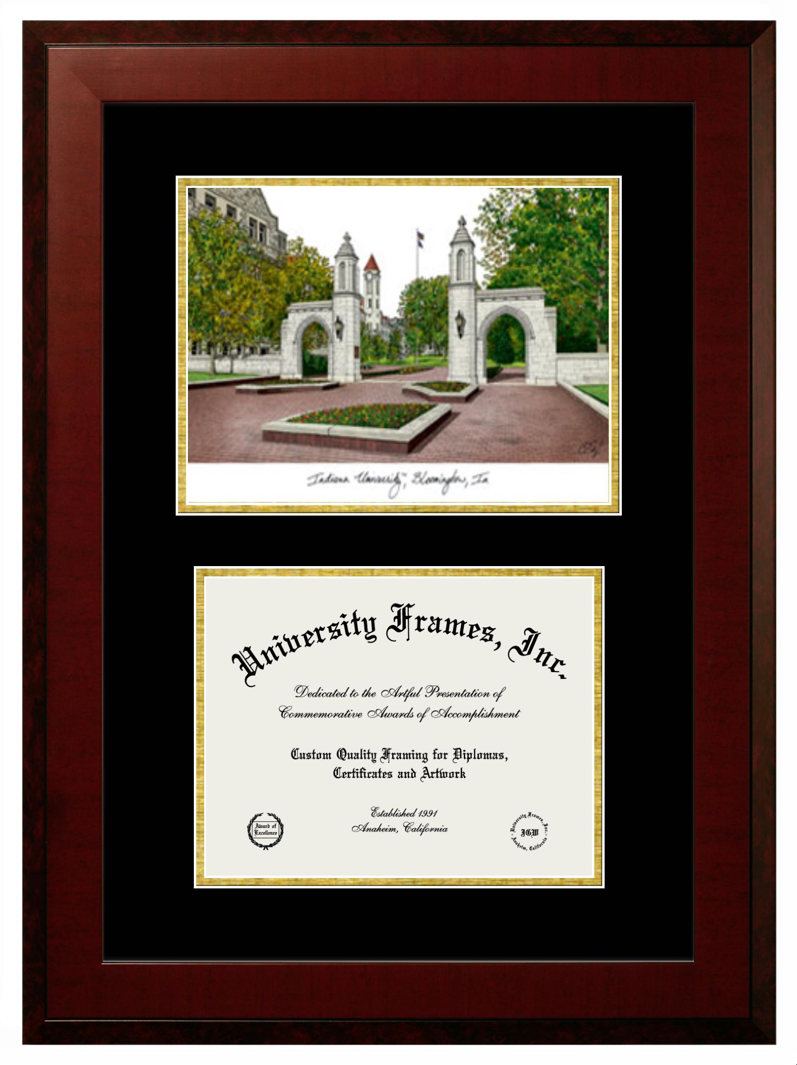 Hey there, Indiana University School of Global and International Studies grads. Congratulations for your accomplishment! Since youโre here, you must be looking for a professional graduation frame to preserve and showcase your Indiana University School of Global and International Studies diploma. Or, you may be looking for a diploma frame for another grad. We at University Frames, create the finest diploma frames and are licensed with Indiana University School of Global and International Studies. Each of our degree frames is handcrafted in the US using the finest hardwood and with an exemplary level of attention to detail. Customize your diploma frame using our easy and intuitive online design tool.