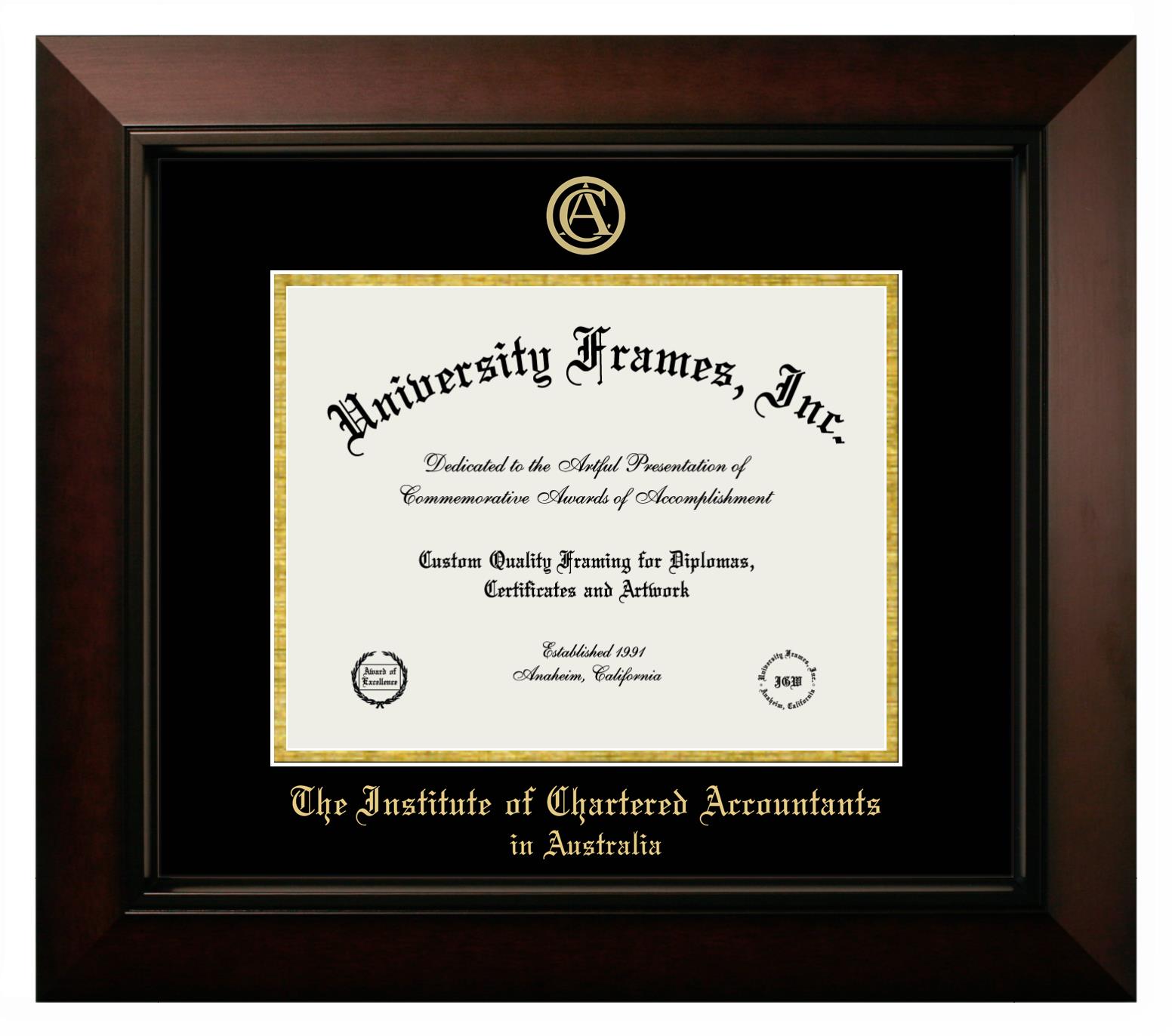 Hey there, Institute of Chartered Accountants in Australia grads. Congratulations for your accomplishment! Since you’re here, you must be looking for a professional graduation frame to preserve and showcase your Institute of Chartered Accountants in Australia diploma. Or, you may be looking for a diploma frame for another grad. We at University Frames, create the finest diploma frames and are licensed with Institute of Chartered Accountants in Australia. Each of our degree frames is handcrafted in the US using the finest hardwood and with an exemplary level of attention to detail. Customize your diploma frame using our easy and intuitive online design tool.