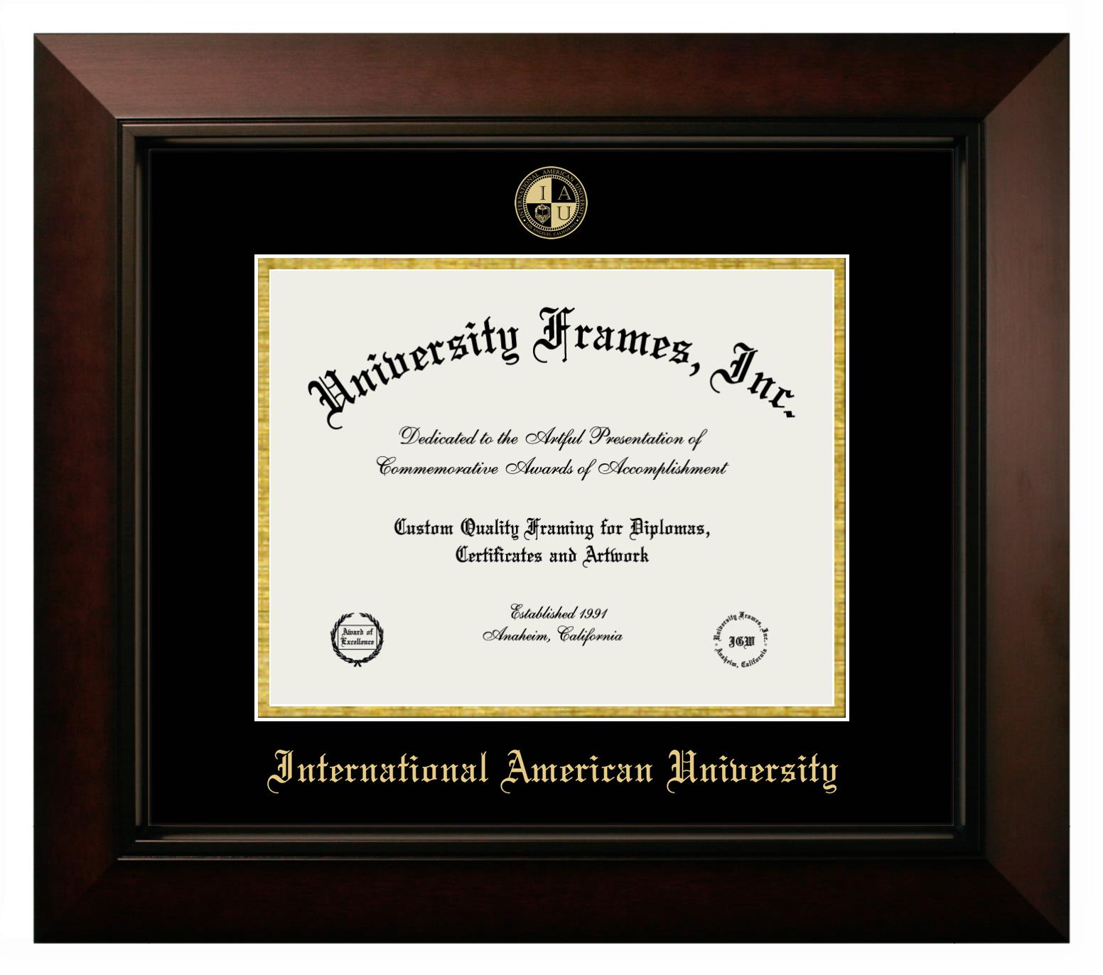 Hey there, International American University grads. Congratulations for your accomplishment! Since you’re here, you must be looking for a professional graduation frame to preserve and showcase your International American University diploma. Or, you may be looking for a diploma frame for another grad. We at University Frames, create the finest diploma frames and are licensed with International American University. Each of our degree frames is handcrafted in the US using the finest hardwood and with an exemplary level of attention to detail. Customize your diploma frame using our easy and intuitive online design tool.