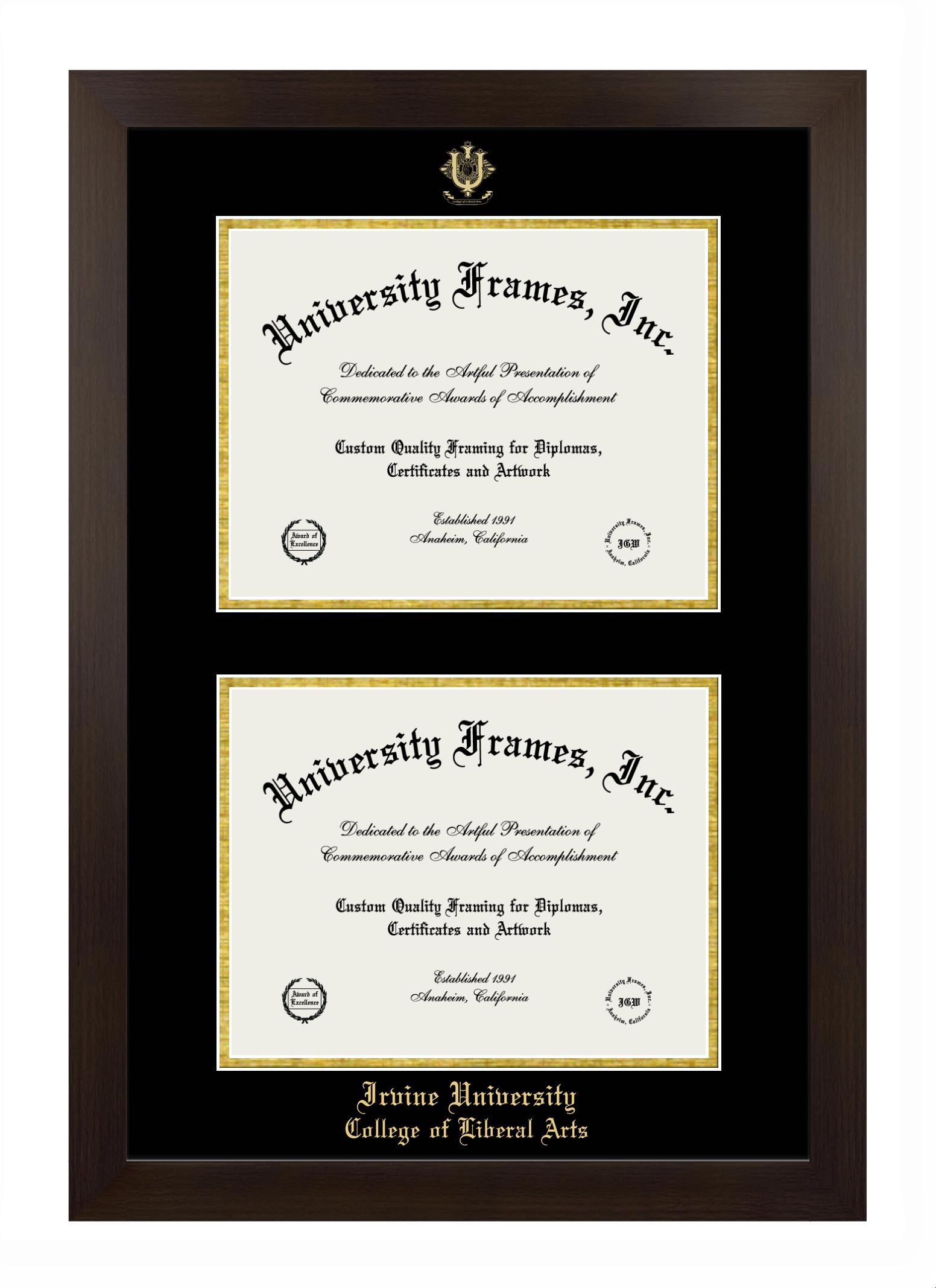 Hey there, Irvine University College of Liberal Arts grads. Congratulations for your accomplishment! Since you’re here, you must be looking for a professional graduation frame to preserve and showcase your Irvine University College of Liberal Arts diploma. Or, you may be looking for a diploma frame for another grad. We at University Frames, create the finest diploma frames and are licensed with Irvine University College of Liberal Arts. Each of our degree frames is handcrafted in the US using the finest hardwood and with an exemplary level of attention to detail. Customize your diploma frame using our easy and intuitive online design tool.