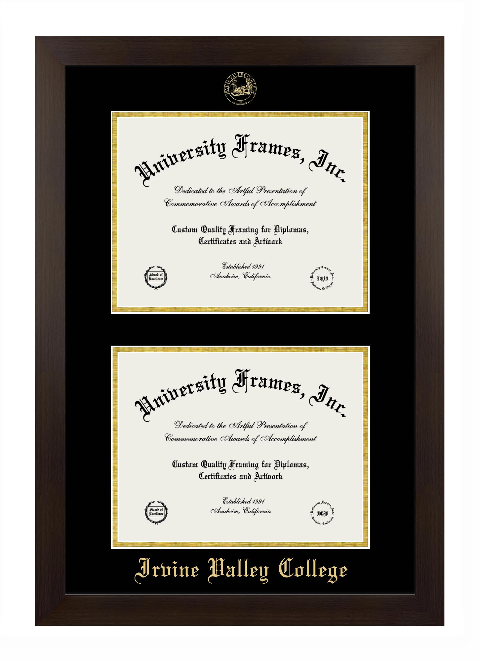 Hey there, Irvine Valley College grads. Congratulations for your accomplishment! Since you’re here, you must be looking for a professional graduation frame to preserve and showcase your Irvine Valley College diploma. Or, you may be looking for a diploma frame for another grad. We at University Frames, create the finest diploma frames and are licensed with Irvine Valley College. Each of our degree frames is handcrafted in the US using the finest hardwood and with an exemplary level of attention to detail. Customize your diploma frame using our easy and intuitive online design tool.
