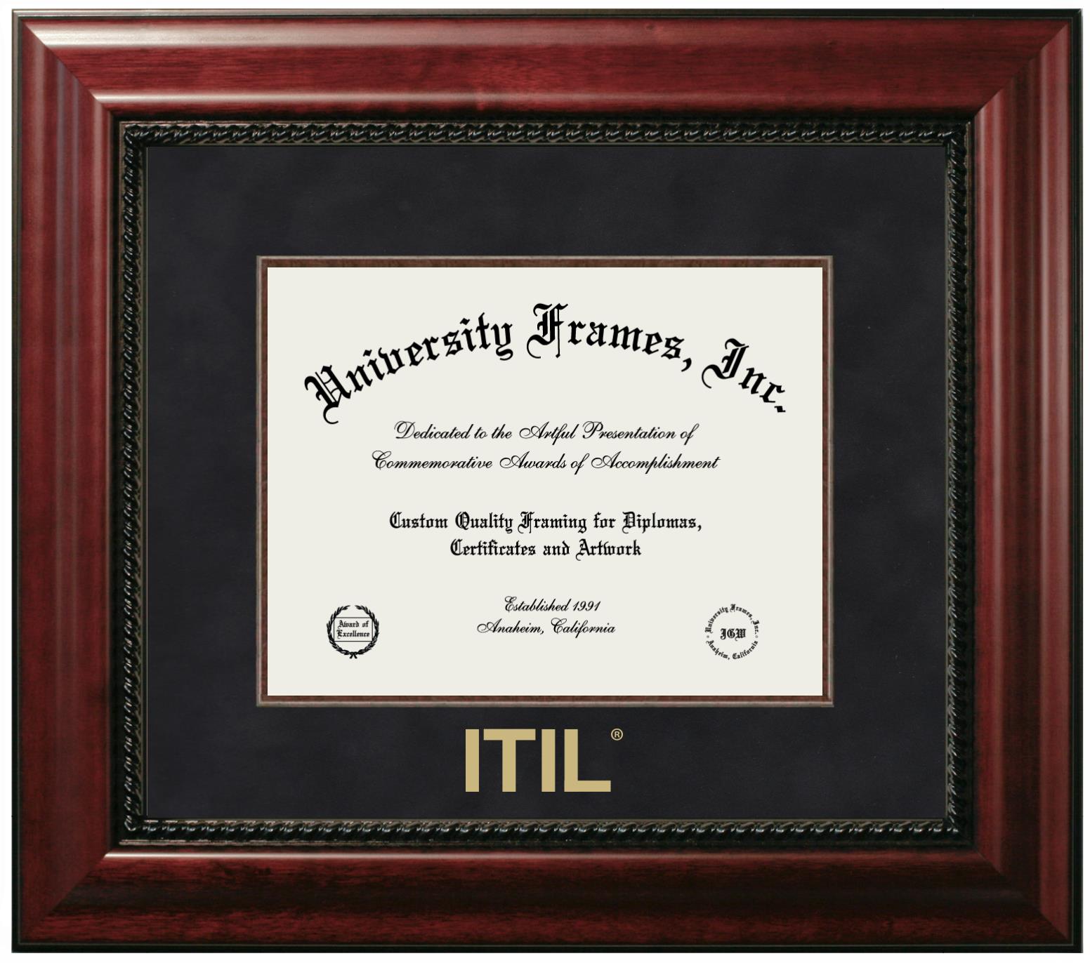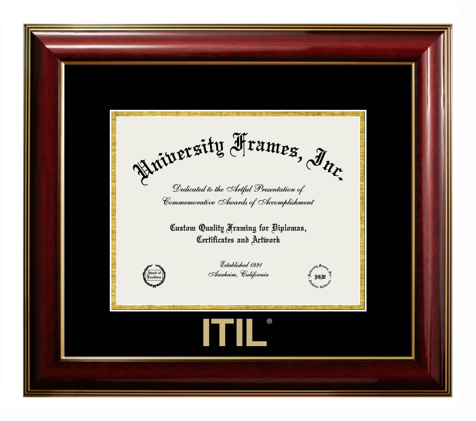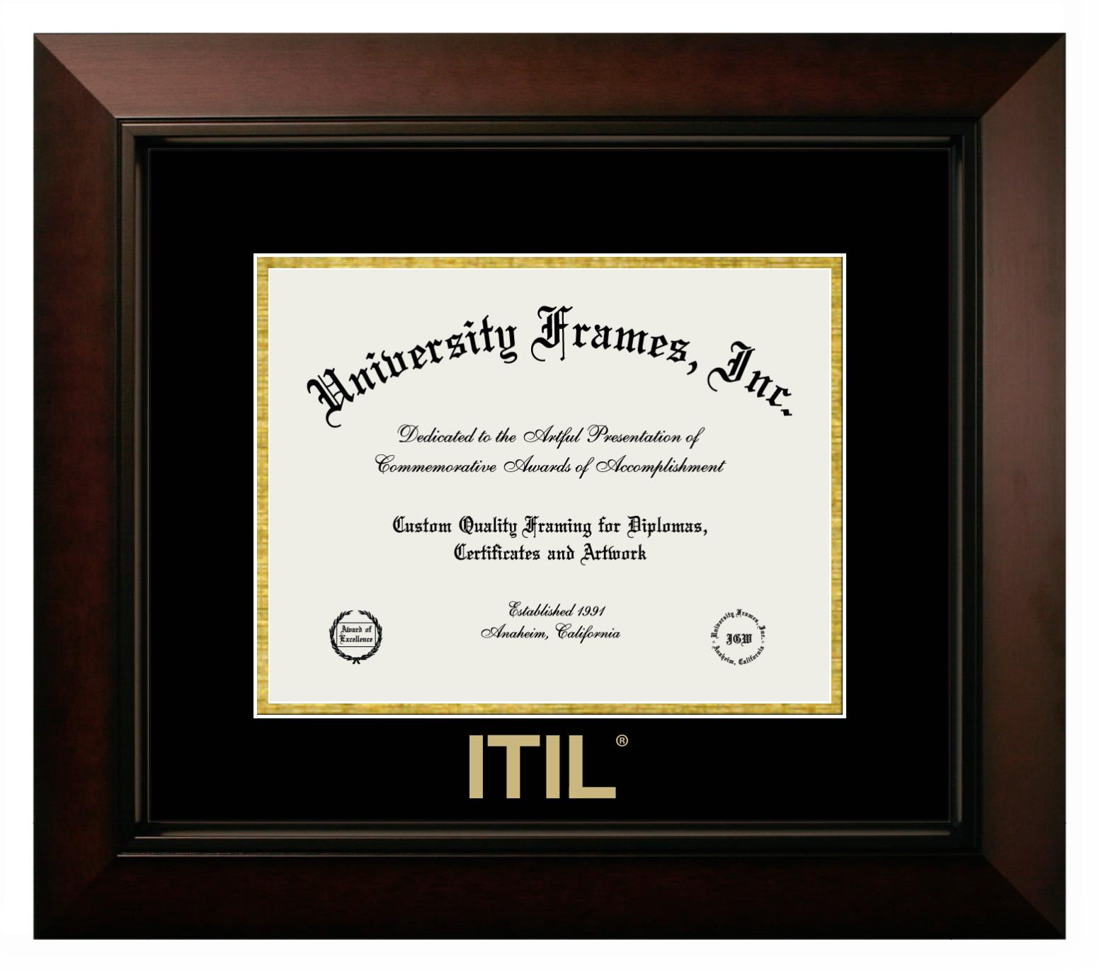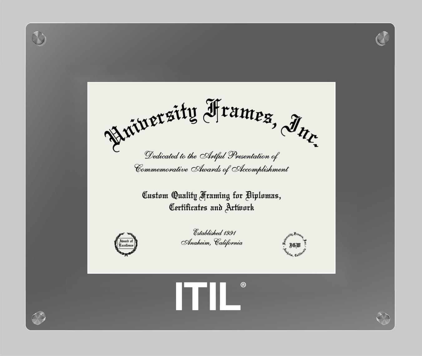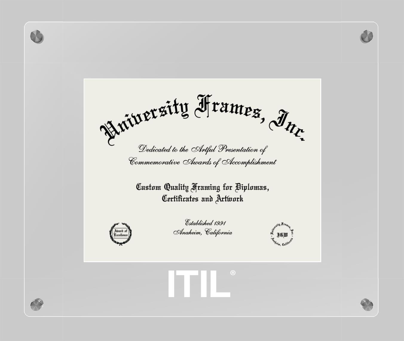 Hey there, ITIL grads. Congratulations for your accomplishment! Since you’re here, you must be looking for a professional graduation frame to preserve and showcase your ITIL diploma. Or, you may be looking for a diploma frame for another grad. We at University Frames, create the finest diploma frames and are licensed with ITIL. Each of our degree frames is handcrafted in the US using the finest hardwood and with an exemplary level of attention to detail. Customize your diploma frame using our easy and intuitive online design tool.