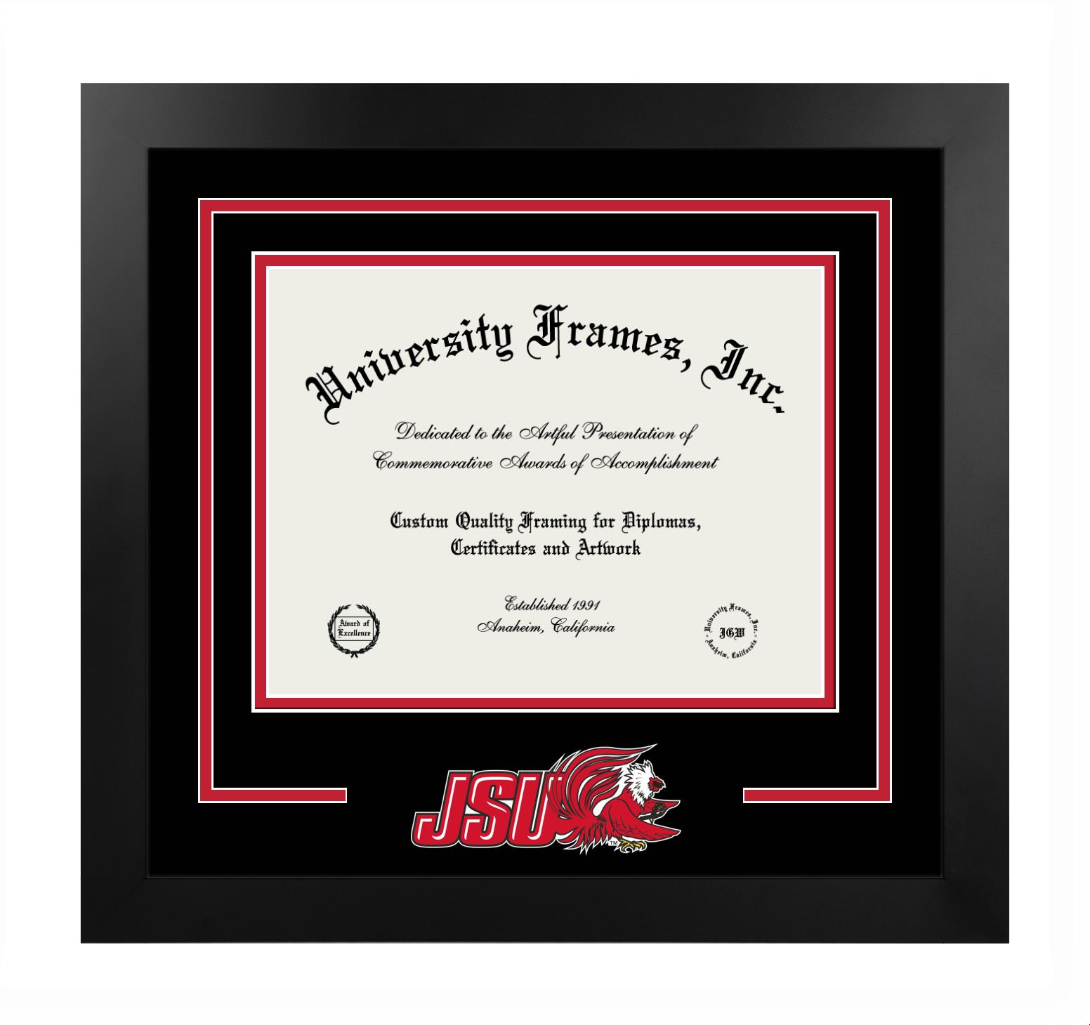 Hey there, Jacksonville State University grads. Congratulations for your accomplishment! Since you’re here, you must be looking for a professional graduation frame to preserve and showcase your Jacksonville State University diploma. Or, you may be looking for a diploma frame for another grad. We at University Frames, create the finest diploma frames and are licensed with Jacksonville State University. Each of our degree frames is handcrafted in the US using the finest hardwood and with an exemplary level of attention to detail. Customize your diploma frame using our easy and intuitive online design tool.
