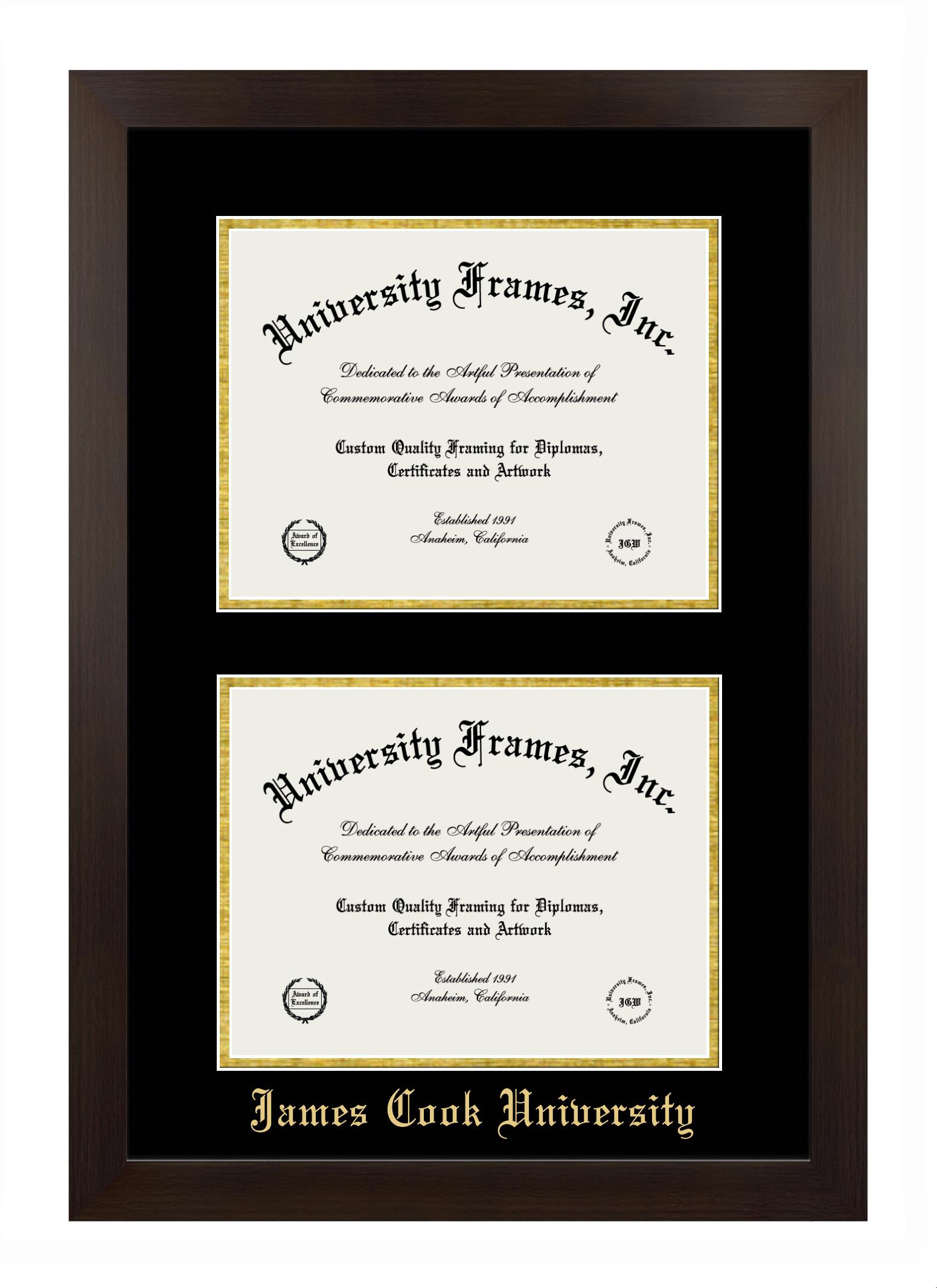 Hey there, James Cook University grads. Congratulations for your accomplishment! Since you’re here, you must be looking for a professional graduation frame to preserve and showcase your James Cook University diploma. Or, you may be looking for a diploma frame for another grad. We at University Frames, create the finest diploma frames and are licensed with James Cook University. Each of our degree frames is handcrafted in the US using the finest hardwood and with an exemplary level of attention to detail. Customize your diploma frame using our easy and intuitive online design tool.