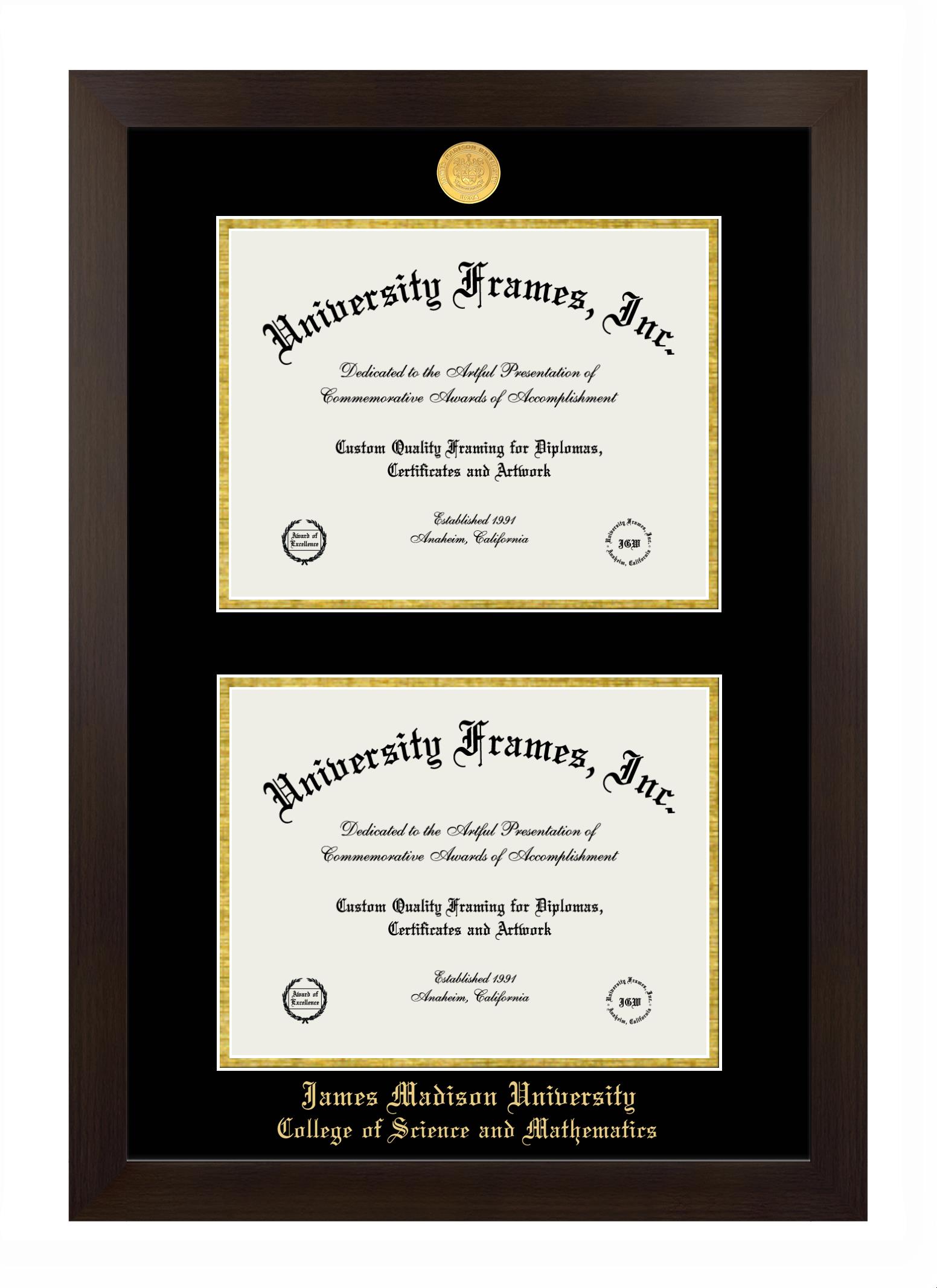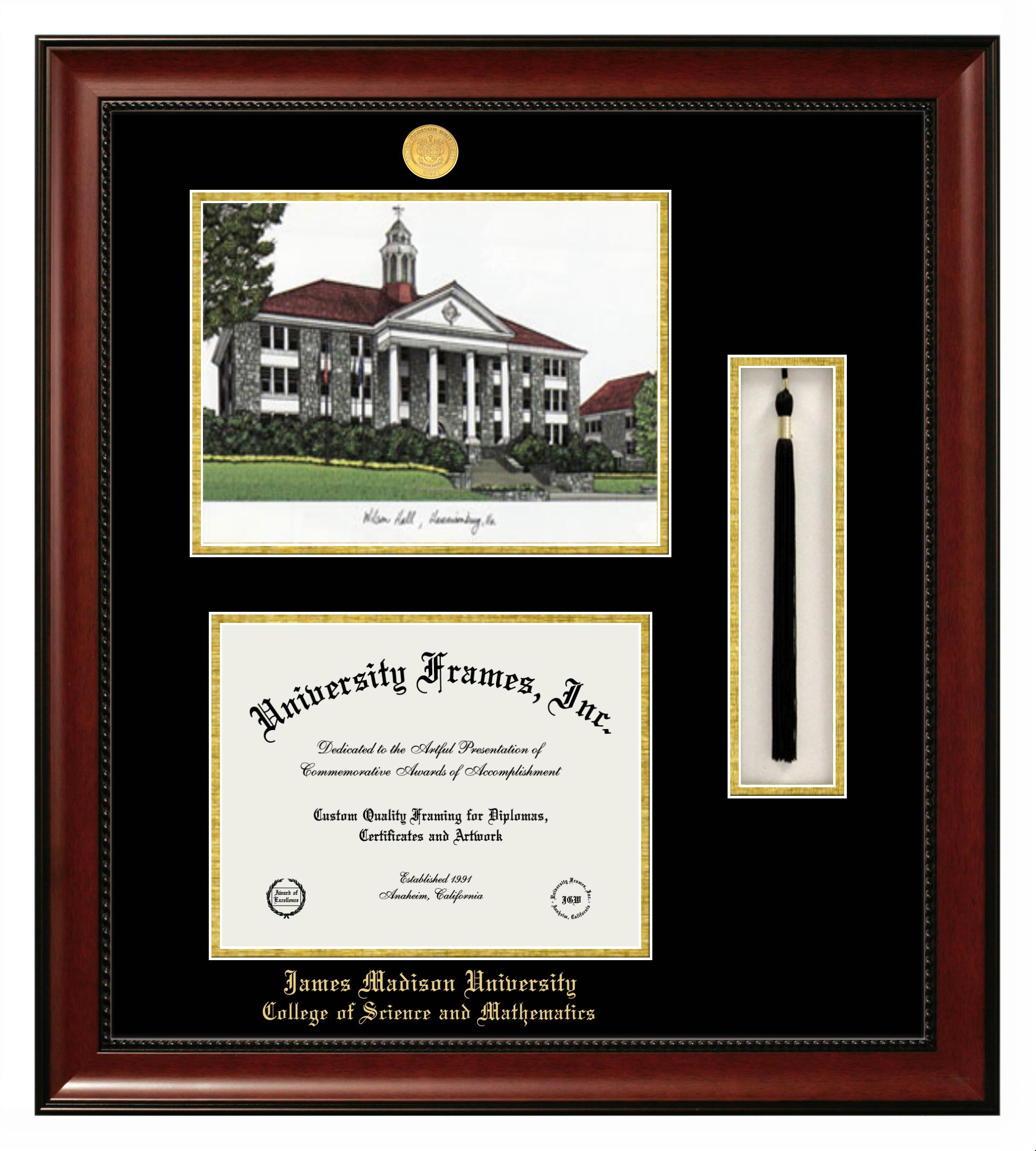Hey there, James Madison University College of Science and Mathematics grads. Congratulations for your accomplishment! Since you’re here, you must be looking for a professional graduation frame to preserve and showcase your James Madison University College of Science and Mathematics diploma. Or, you may be looking for a diploma frame for another grad. We at University Frames, create the finest diploma frames and are licensed with James Madison University College of Science and Mathematics. Each of our degree frames is handcrafted in the US using the finest hardwood and with an exemplary level of attention to detail. Customize your diploma frame using our easy and intuitive online design tool.