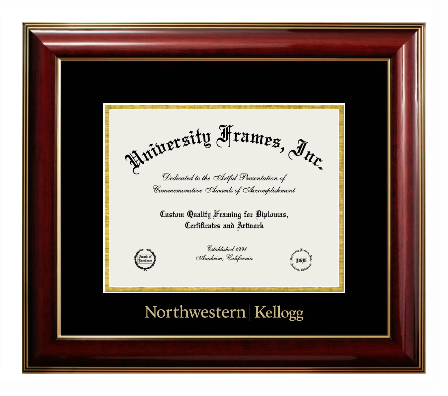 Hey there, Kellogg School of Management (Northwestern University) grads. Congratulations for your accomplishment! Since you’re here, you must be looking for a professional graduation frame to preserve and showcase your Kellogg School of Management (Northwestern University) diploma. Or, you may be looking for a diploma frame for another grad. We at University Frames, create the finest diploma frames and are licensed with Kellogg School of Management (Northwestern University). Each of our degree frames is handcrafted in the US using the finest hardwood and with an exemplary level of attention to detail. Customize your diploma frame using our easy and intuitive online design tool.
