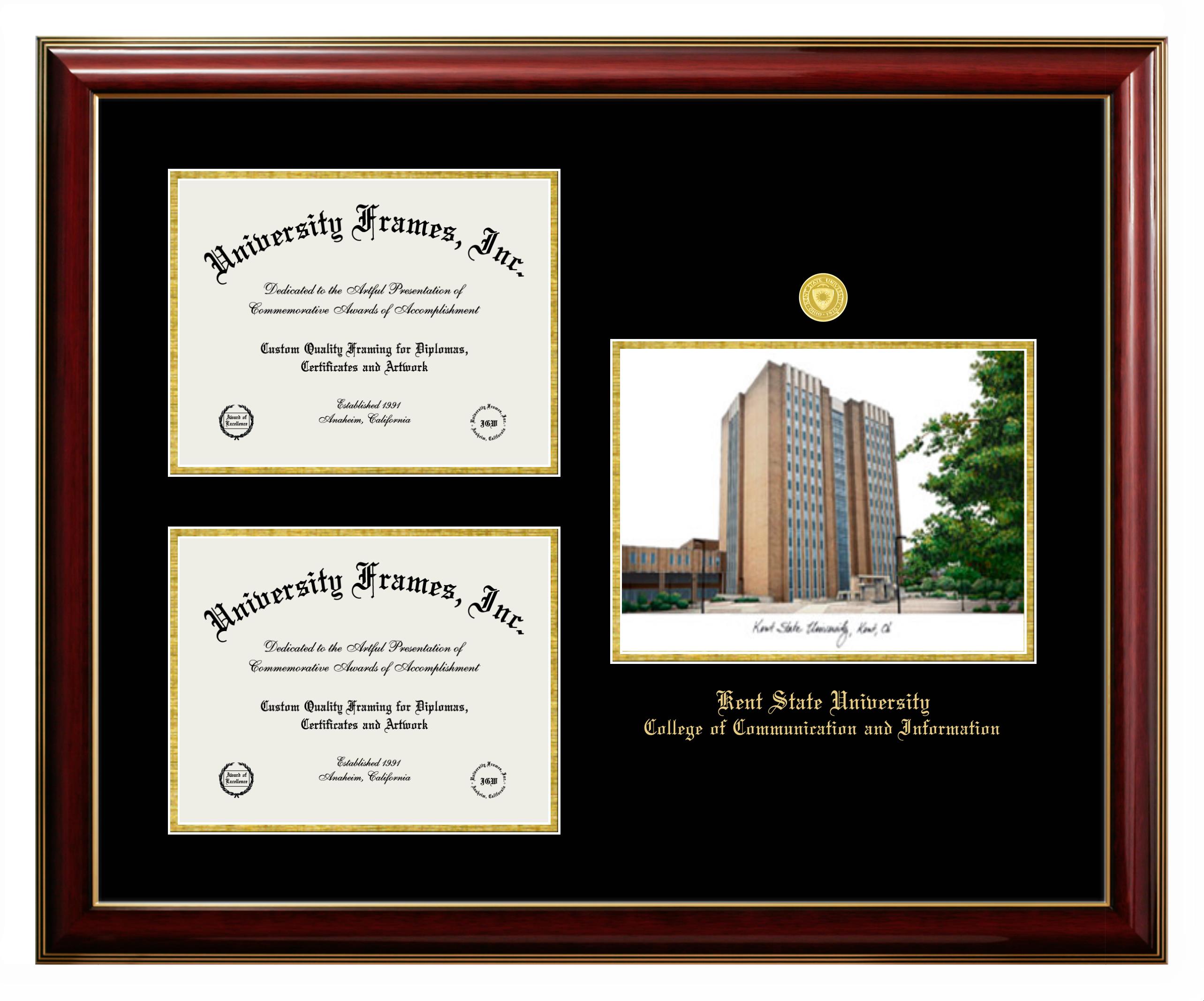 Hey there, Kent State University College of Communication and Information grads. Congratulations for your accomplishment! Since you’re here, you must be looking for a professional graduation frame to preserve and showcase your Kent State University College of Communication and Information diploma. Or, you may be looking for a diploma frame for another grad. We at University Frames, create the finest diploma frames and are licensed with Kent State University College of Communication and Information. Each of our degree frames is handcrafted in the US using the finest hardwood and with an exemplary level of attention to detail. Customize your diploma frame using our easy and intuitive online design tool.