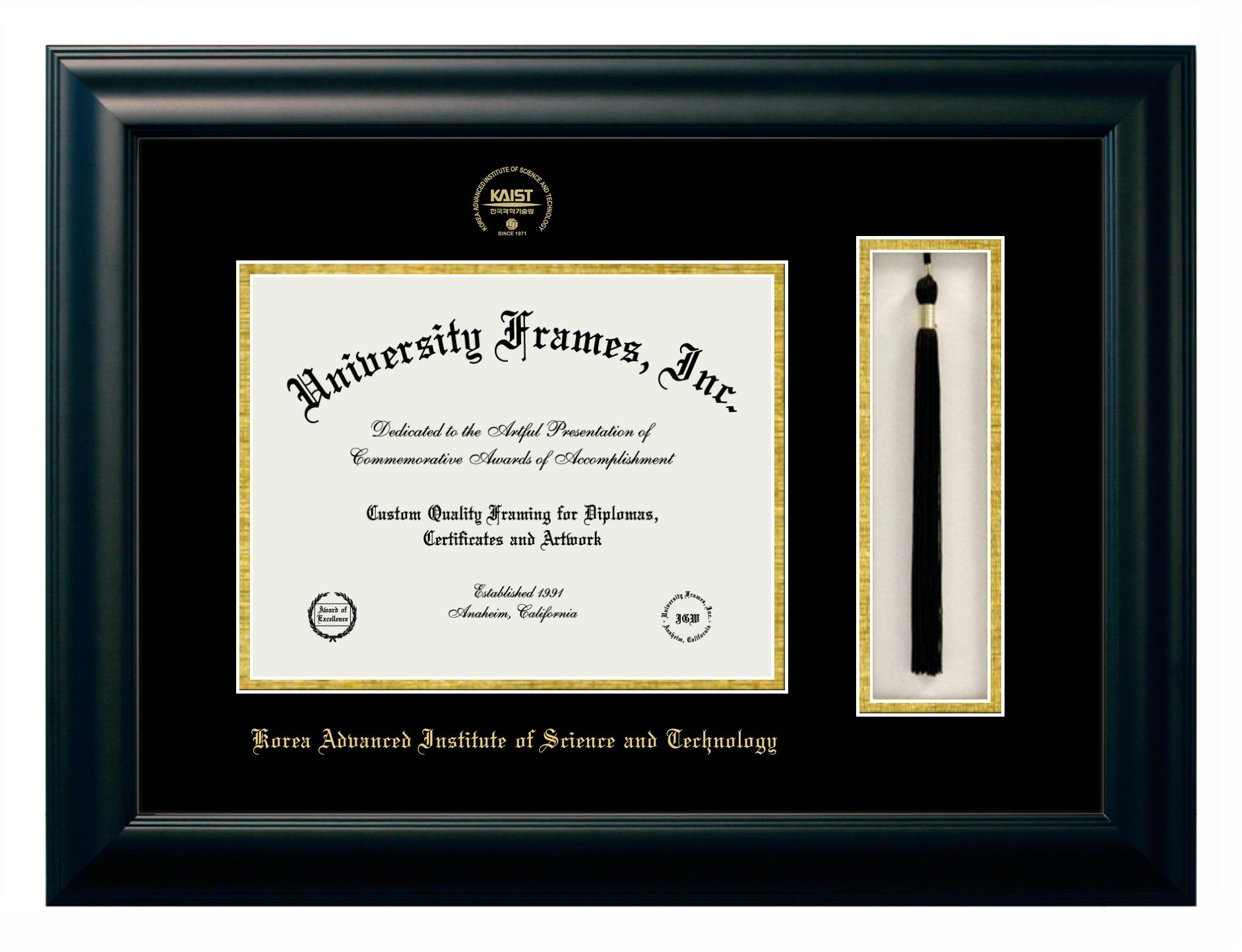 Hey there, Korea Advanced Institute of Science and Technology grads. Congratulations for your accomplishment! Since youโre here, you must be looking for a professional graduation frame to preserve and showcase your Korea Advanced Institute of Science and Technology diploma. Or, you may be looking for a diploma frame for another grad. We at University Frames, create the finest diploma frames and are licensed with Korea Advanced Institute of Science and Technology. Each of our degree frames is handcrafted in the US using the finest hardwood and with an exemplary level of attention to detail. Customize your diploma frame using our easy and intuitive online design tool.