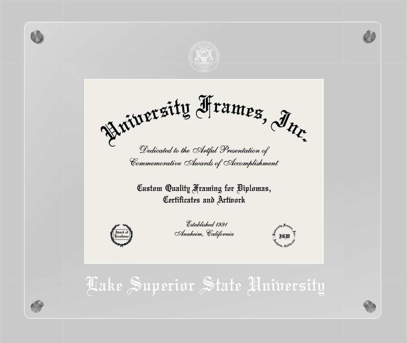 Hey there, Lake Superior State University grads. Congratulations for your accomplishment! Since you’re here, you must be looking for a professional graduation frame to preserve and showcase your Lake Superior State University diploma. Or, you may be looking for a diploma frame for another grad. We at University Frames, create the finest diploma frames and are licensed with Lake Superior State University. Each of our degree frames is handcrafted in the US using the finest hardwood and with an exemplary level of attention to detail. Customize your diploma frame using our easy and intuitive online design tool.