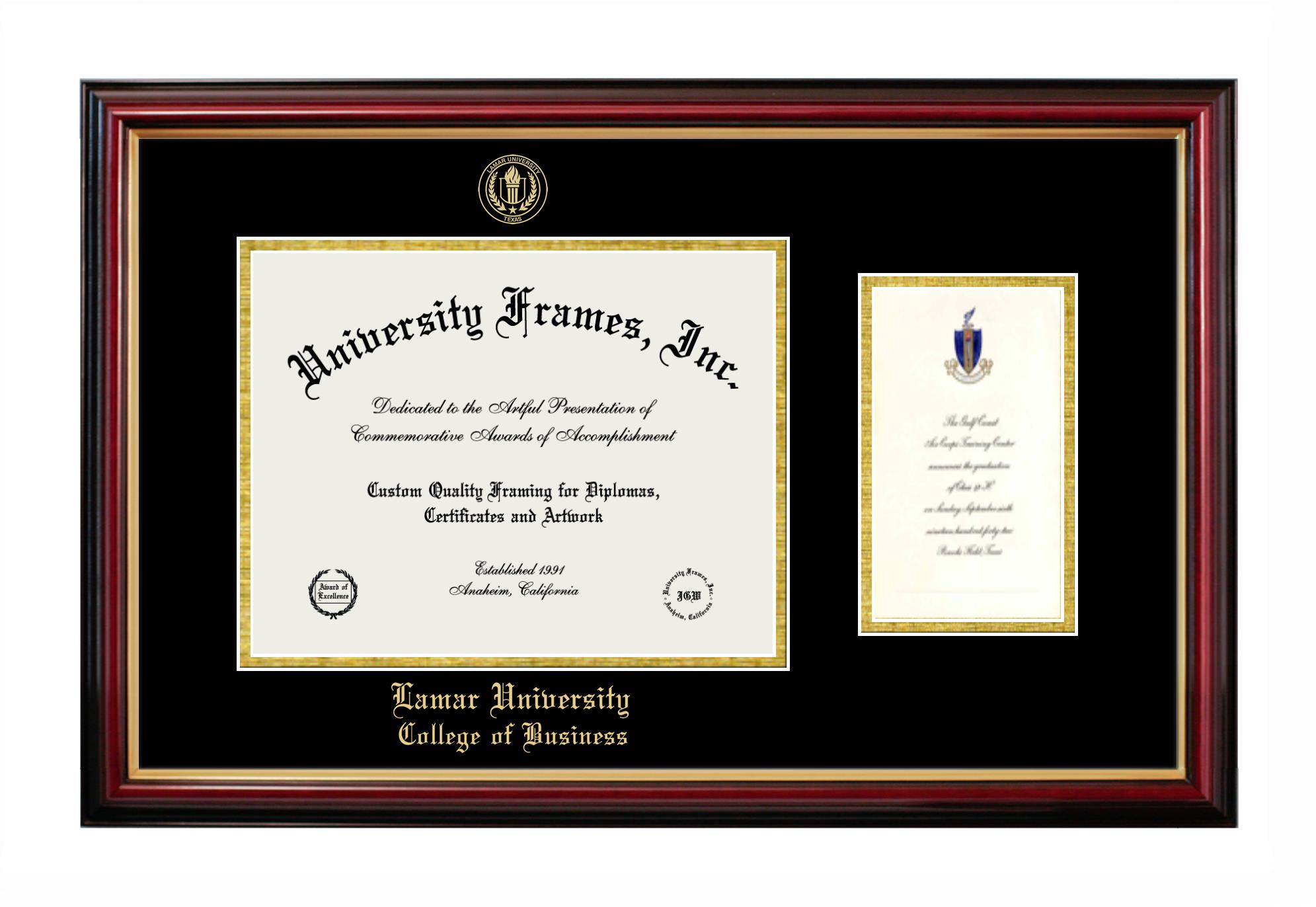 Hey there, Lamar University College of Business grads. Congratulations for your accomplishment! Since you’re here, you must be looking for a professional graduation frame to preserve and showcase your Lamar University College of Business diploma. Or, you may be looking for a diploma frame for another grad. We at University Frames, create the finest diploma frames and are licensed with Lamar University College of Business. Each of our degree frames is handcrafted in the US using the finest hardwood and with an exemplary level of attention to detail. Customize your diploma frame using our easy and intuitive online design tool.