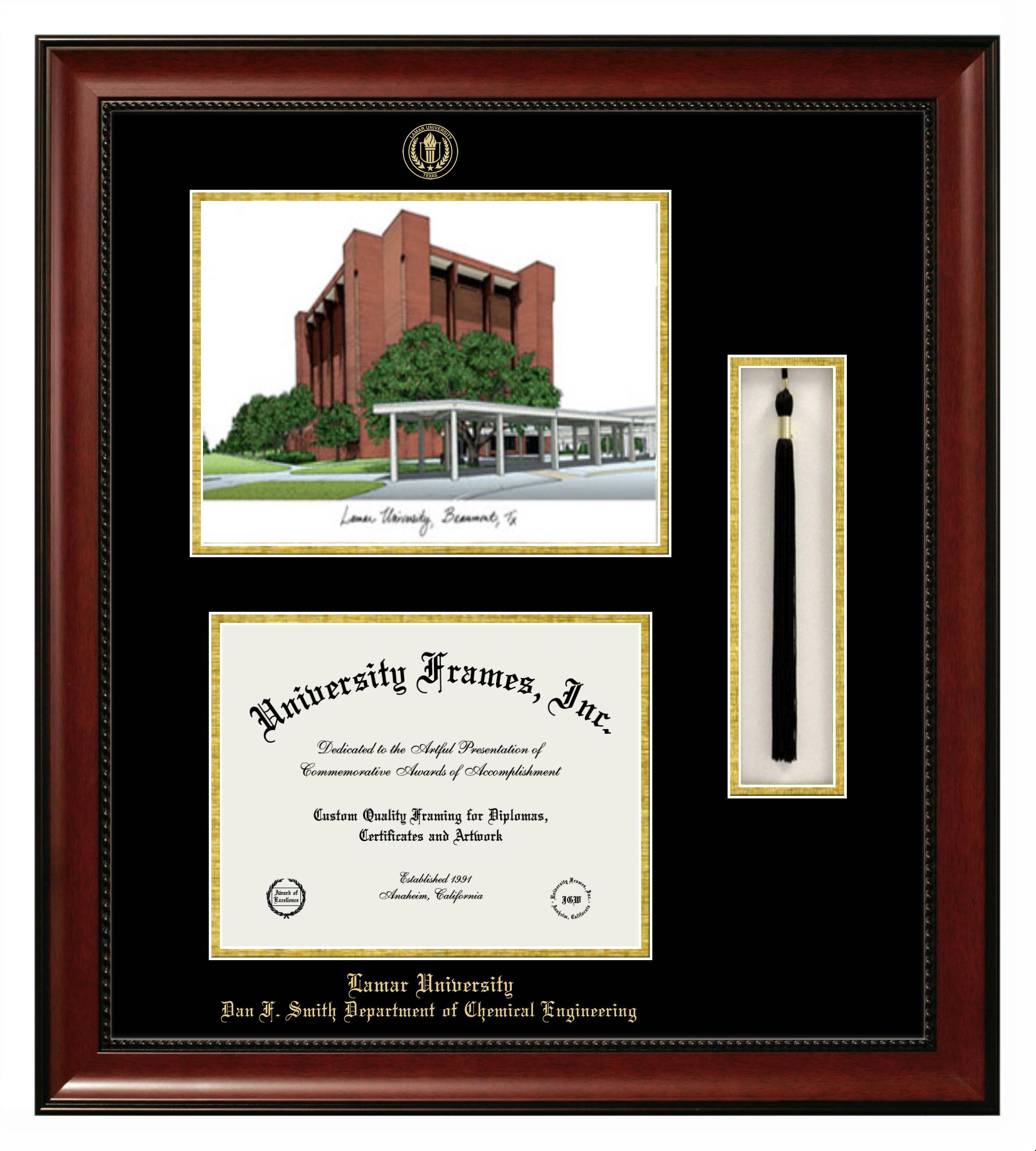 Hey there, Lamar University Dan F. Smith Department of Chemical Engineering grads. Congratulations for your accomplishment! Since youโre here, you must be looking for a professional graduation frame to preserve and showcase your Lamar University Dan F. Smith Department of Chemical Engineering diploma. Or, you may be looking for a diploma frame for another grad. We at University Frames, create the finest diploma frames and are licensed with Lamar University Dan F. Smith Department of Chemical Engineering. Each of our degree frames is handcrafted in the US using the finest hardwood and with an exemplary level of attention to detail. Customize your diploma frame using our easy and intuitive online design tool.