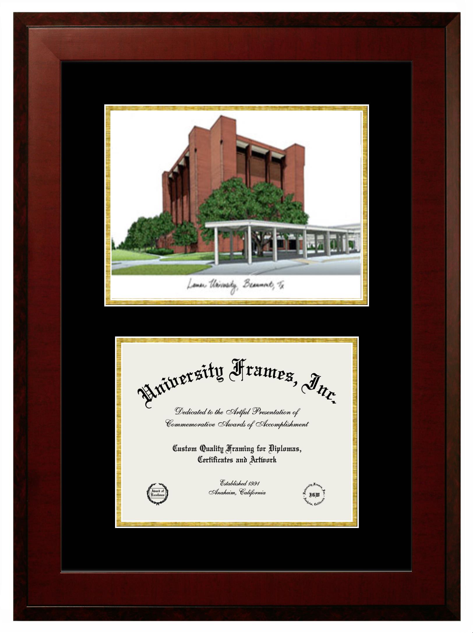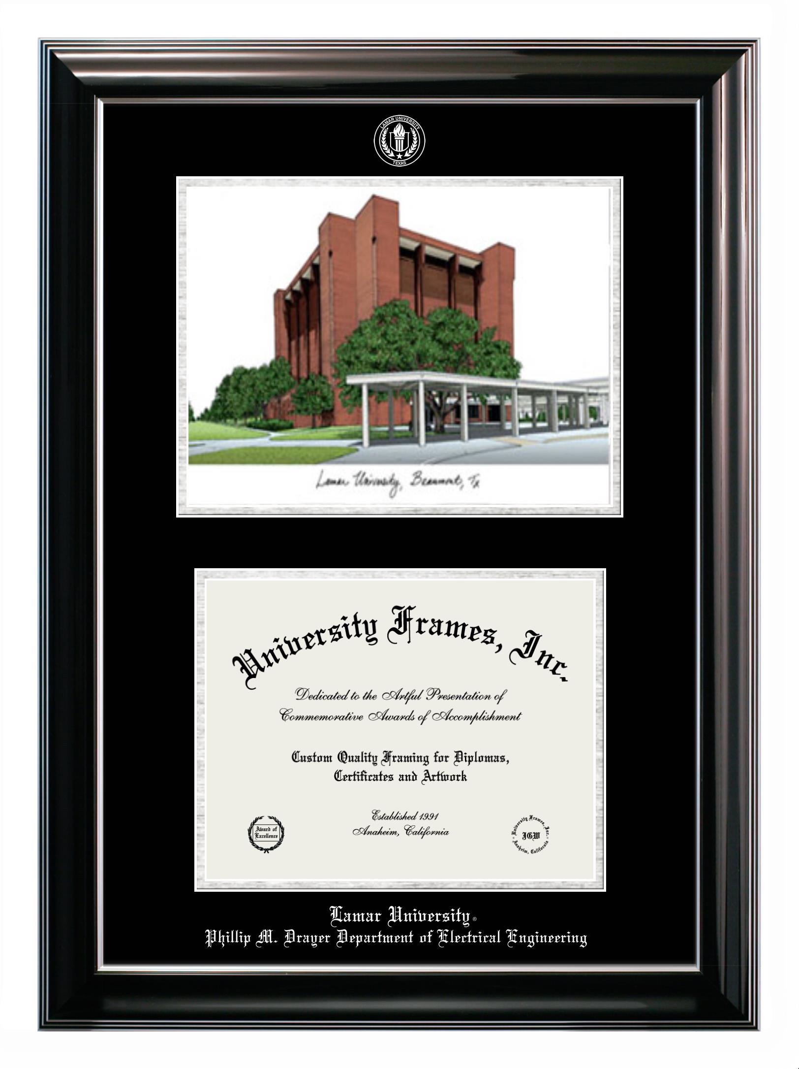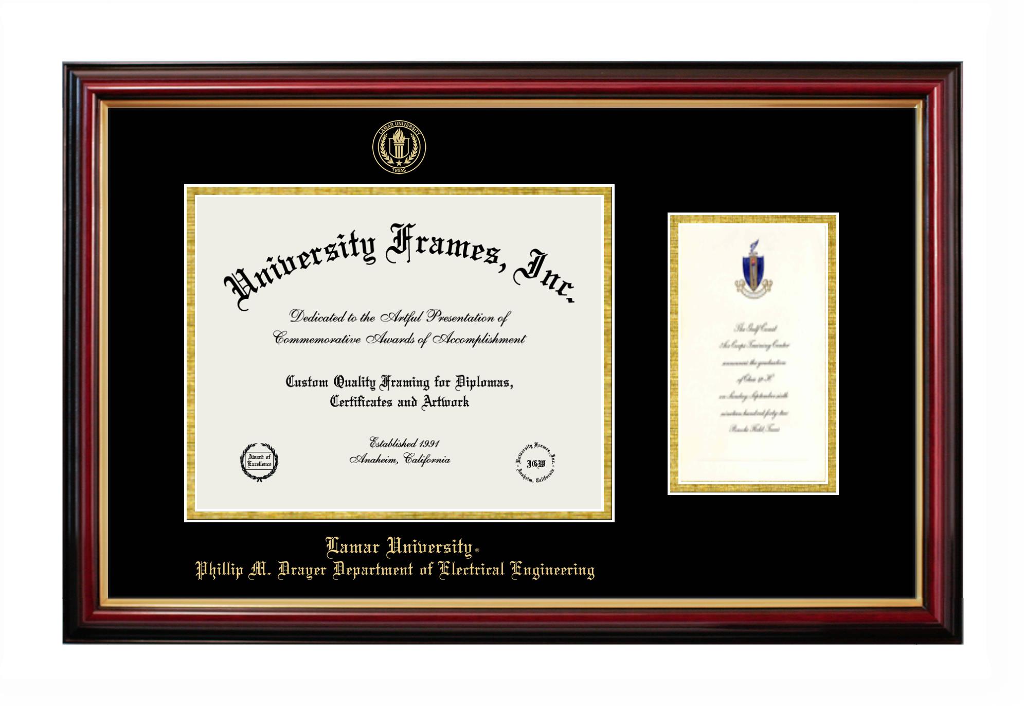 Hey there, Lamar University Phillip M. Drayer Department of Electrical Engineering grads. Congratulations for your accomplishment! Since youโre here, you must be looking for a professional graduation frame to preserve and showcase your Lamar University Phillip M. Drayer Department of Electrical Engineering diploma. Or, you may be looking for a diploma frame for another grad. We at University Frames, create the finest diploma frames and are licensed with Lamar University Phillip M. Drayer Department of Electrical Engineering. Each of our degree frames is handcrafted in the US using the finest hardwood and with an exemplary level of attention to detail. Customize your diploma frame using our easy and intuitive online design tool.