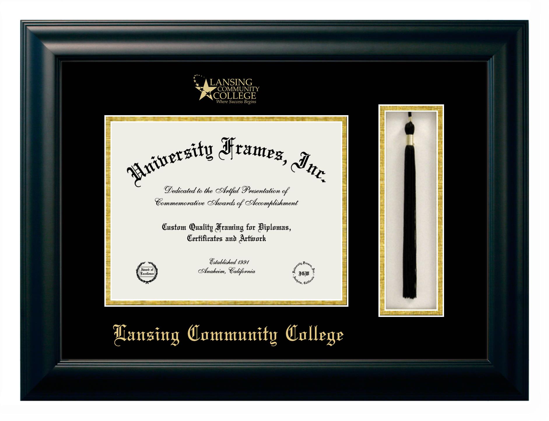 Hey there, Lansing Community College grads. Congratulations for your accomplishment! Since youโre here, you must be looking for a professional graduation frame to preserve and showcase your Lansing Community College diploma. Or, you may be looking for a diploma frame for another grad. We at University Frames, create the finest diploma frames and are licensed with Lansing Community College. Each of our degree frames is handcrafted in the US using the finest hardwood and with an exemplary level of attention to detail. Customize your diploma frame using our easy and intuitive online design tool.