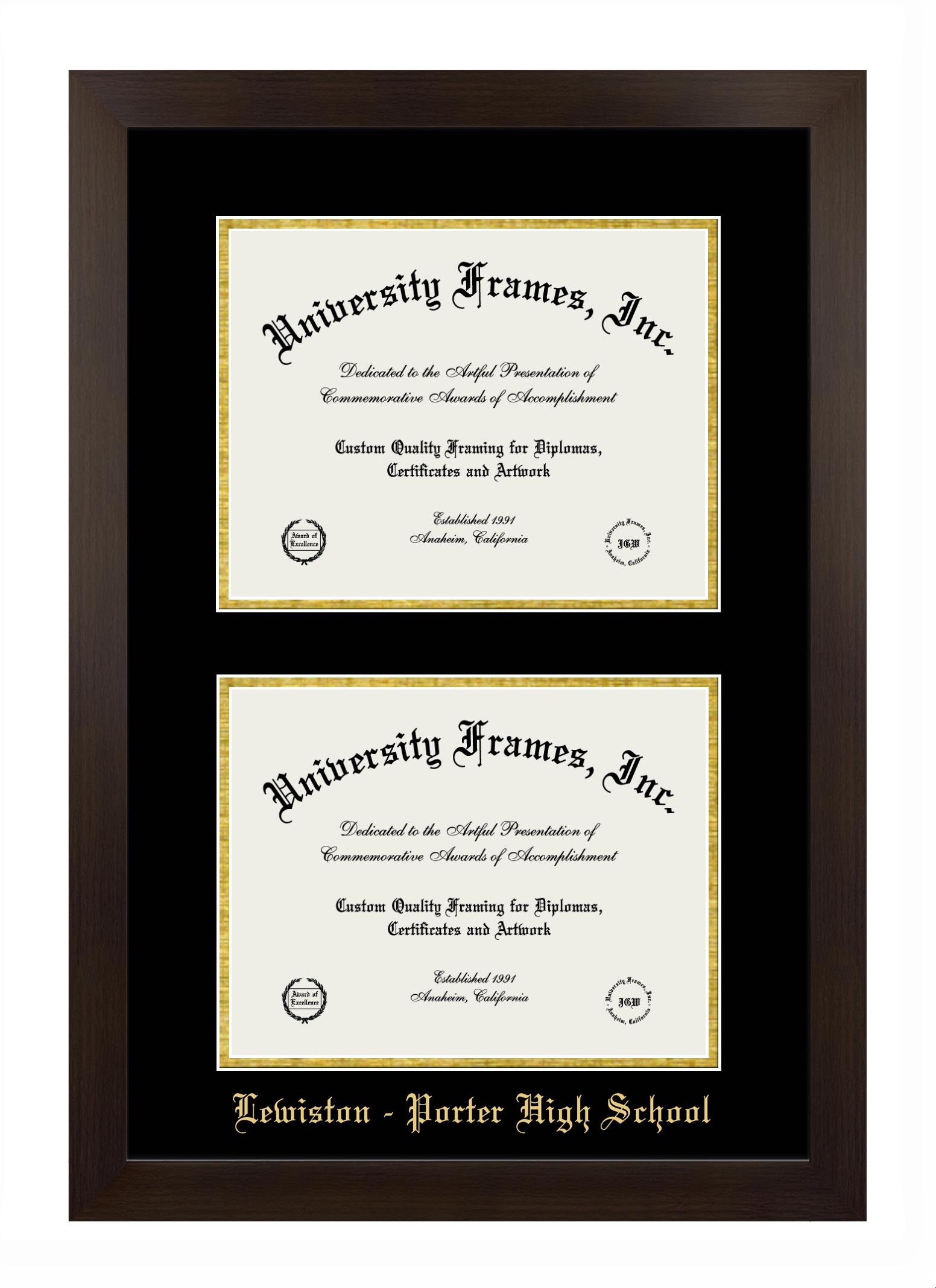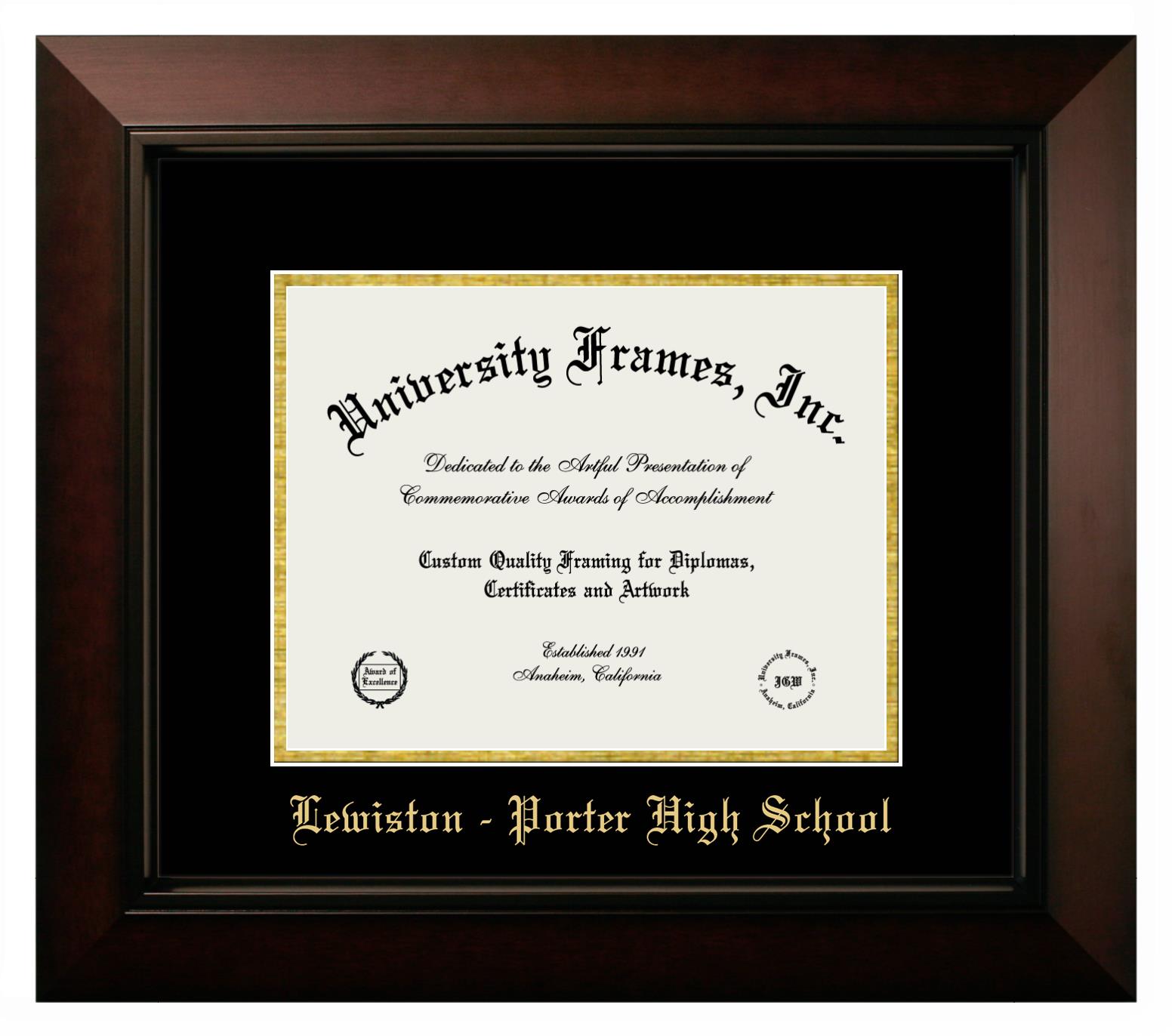 Hey there, Lewiston - Porter High School grads. Congratulations for your accomplishment! Since youโre here, you must be looking for a professional graduation frame to preserve and showcase your Lewiston - Porter High School diploma. Or, you may be looking for a diploma frame for another grad. We at University Frames, create the finest diploma frames and are licensed with Lewiston - Porter High School. Each of our degree frames is handcrafted in the US using the finest hardwood and with an exemplary level of attention to detail. Customize your diploma frame using our easy and intuitive online design tool.