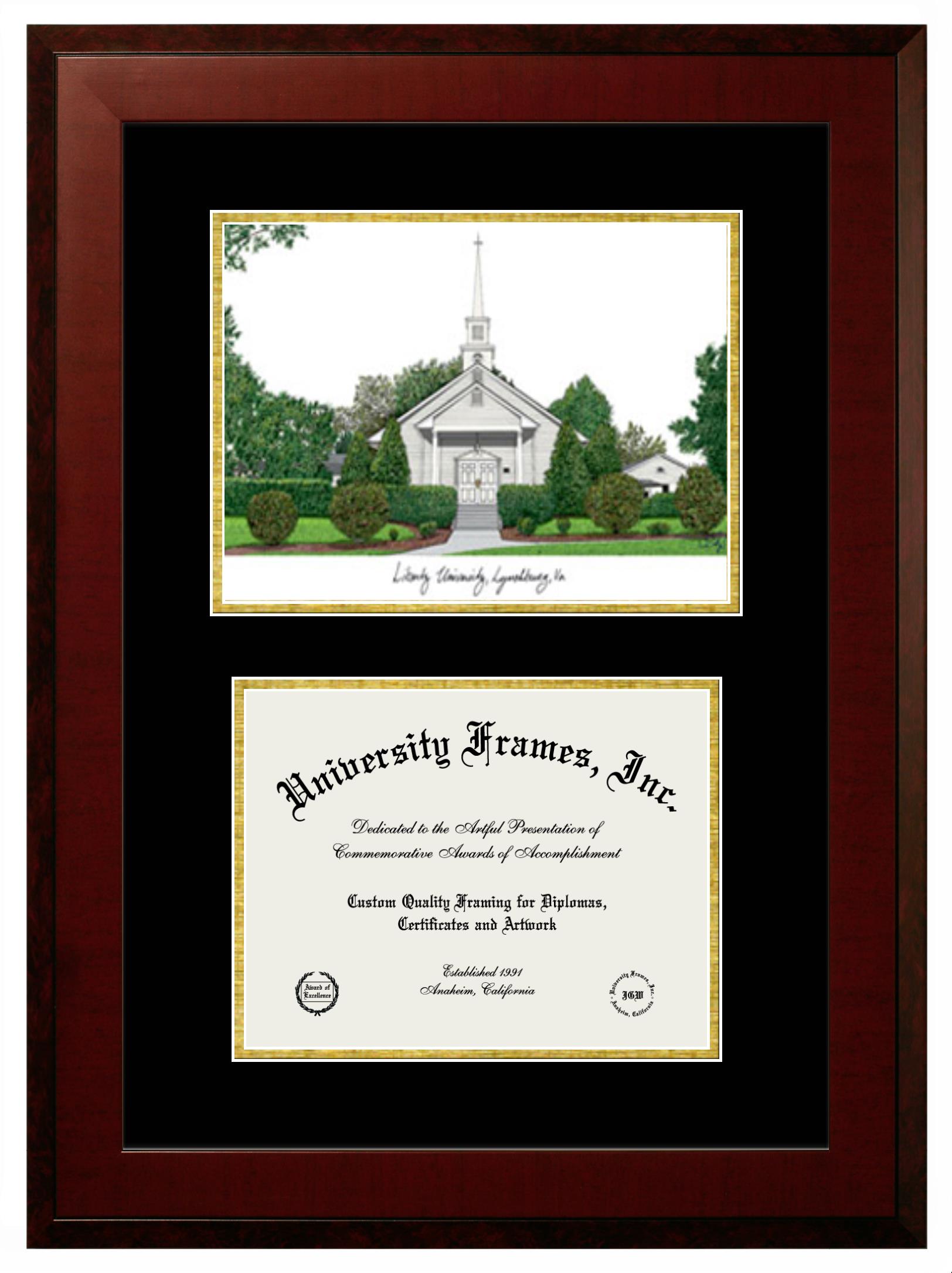 Hey there, Liberty University grads. Congratulations for your accomplishment! Since you’re here, you must be looking for a professional graduation frame to preserve and showcase your Liberty University diploma. Or, you may be looking for a diploma frame for another grad. We at University Frames, create the finest diploma frames and are licensed with Liberty University. Each of our degree frames is handcrafted in the US using the finest hardwood and with an exemplary level of attention to detail. Customize your diploma frame using our easy and intuitive online design tool.