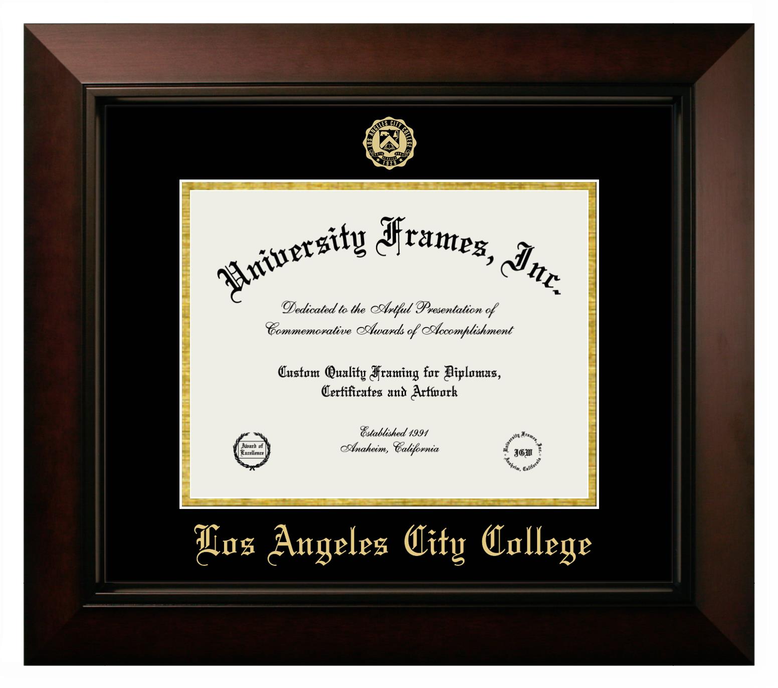 Hey there, Los Angeles City College grads. Congratulations for your accomplishment! Since youโre here, you must be looking for a professional graduation frame to preserve and showcase your Los Angeles City College diploma. Or, you may be looking for a diploma frame for another grad. We at University Frames, create the finest diploma frames and are licensed with Los Angeles City College. Each of our degree frames is handcrafted in the US using the finest hardwood and with an exemplary level of attention to detail. Customize your diploma frame using our easy and intuitive online design tool.