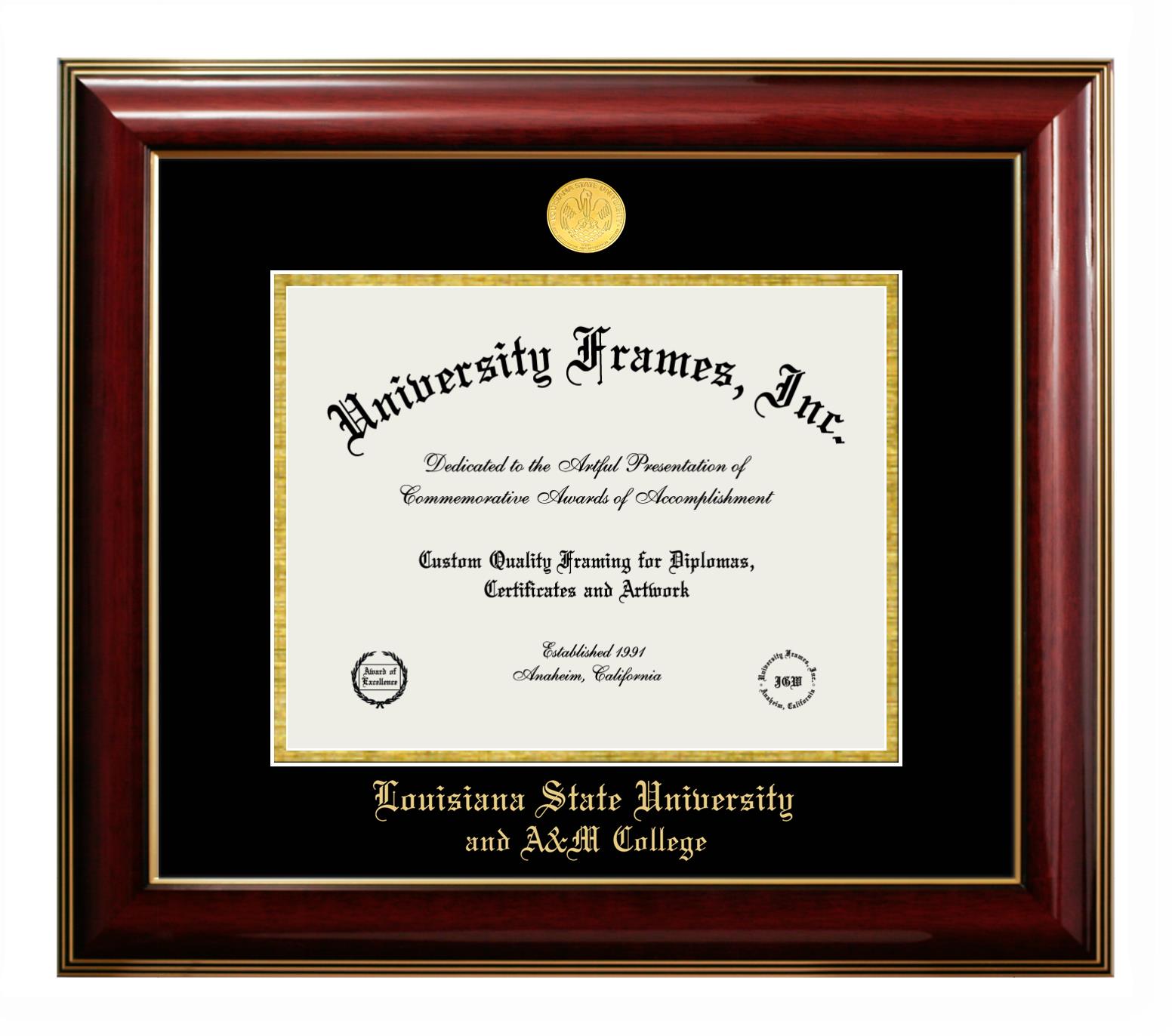 Hey there, Louisiana State University and A&M College grads. Congratulations for your accomplishment! Since you’re here, you must be looking for a professional graduation frame to preserve and showcase your Louisiana State University and A&M College diploma. Or, you may be looking for a diploma frame for another grad. We at University Frames, create the finest diploma frames and are licensed with Louisiana State University and A&M College. Each of our degree frames is handcrafted in the US using the finest hardwood and with an exemplary level of attention to detail. Customize your diploma frame using our easy and intuitive online design tool.