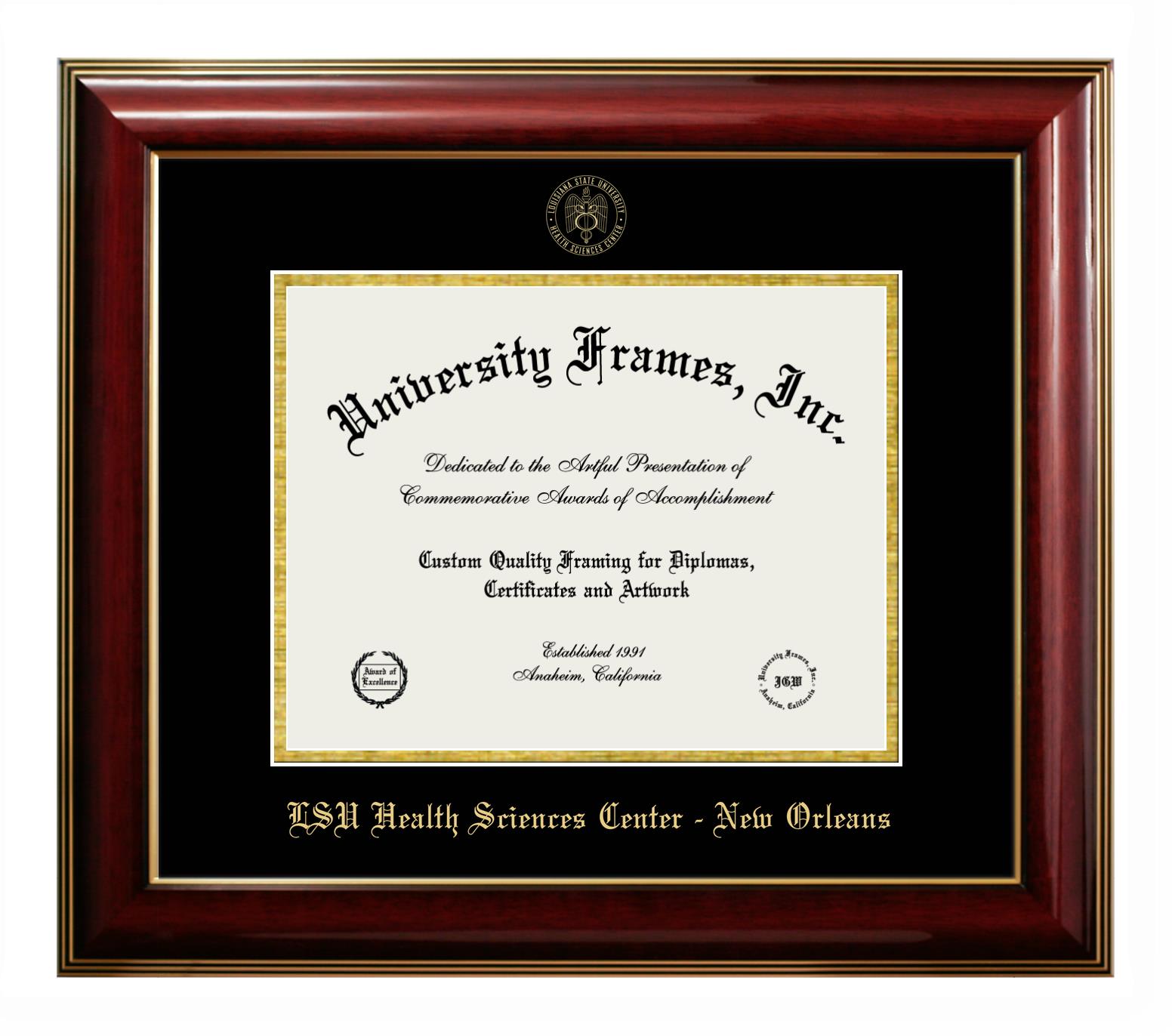 Hey there, Louisiana State University Health Sciences Center - New Orleans grads. Congratulations for your accomplishment! Since you’re here, you must be looking for a professional graduation frame to preserve and showcase your Louisiana State University Health Sciences Center - New Orleans diploma. Or, you may be looking for a diploma frame for another grad. We at University Frames, create the finest diploma frames and are licensed with Louisiana State University Health Sciences Center - New Orleans. Each of our degree frames is handcrafted in the US using the finest hardwood and with an exemplary level of attention to detail. Customize your diploma frame using our easy and intuitive online design tool.