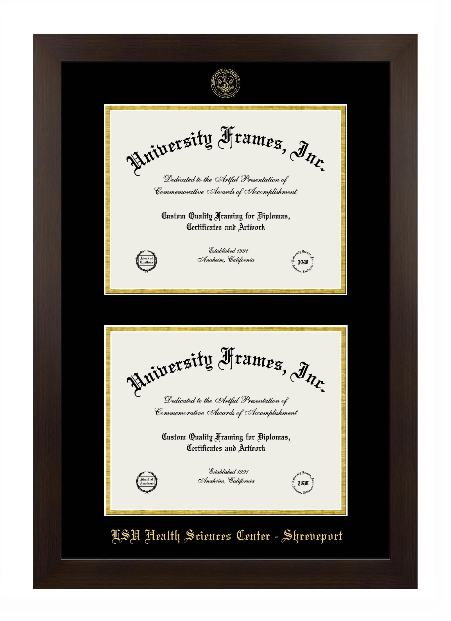Hey there, Louisiana State University Health Sciences Center - Shreveport grads. Congratulations for your accomplishment! Since you’re here, you must be looking for a professional graduation frame to preserve and showcase your Louisiana State University Health Sciences Center - Shreveport diploma. Or, you may be looking for a diploma frame for another grad. We at University Frames, create the finest diploma frames and are licensed with Louisiana State University Health Sciences Center - Shreveport. Each of our degree frames is handcrafted in the US using the finest hardwood and with an exemplary level of attention to detail. Customize your diploma frame using our easy and intuitive online design tool.