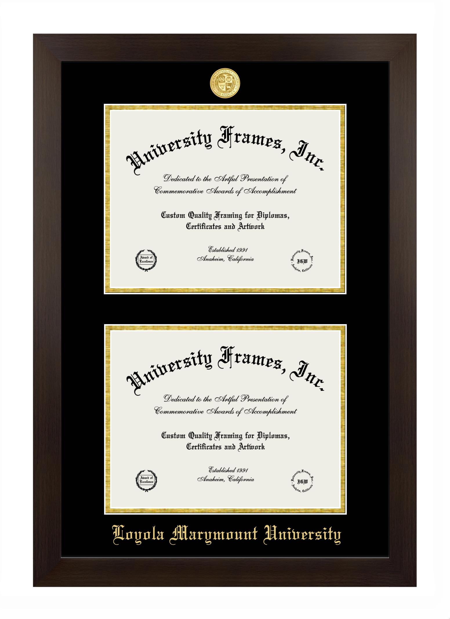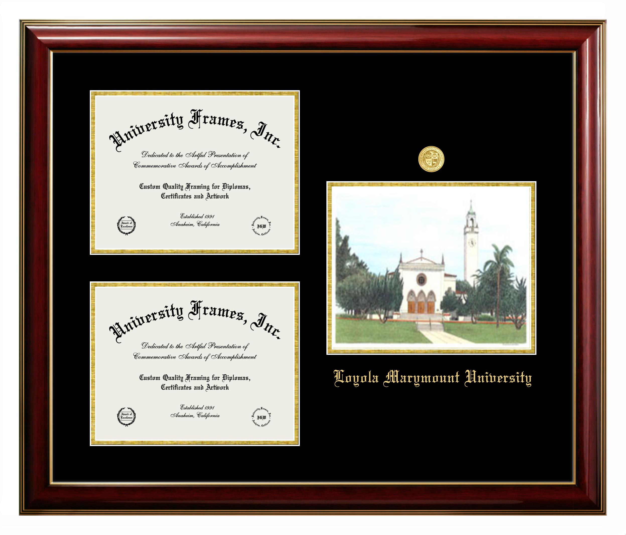 Hey there, Loyola Marymount University grads. Congratulations for your accomplishment! Since youโre here, you must be looking for a professional graduation frame to preserve and showcase your Loyola Marymount University diploma. Or, you may be looking for a diploma frame for another grad. We at University Frames, create the finest diploma frames and are licensed with Loyola Marymount University. Each of our degree frames is handcrafted in the US using the finest hardwood and with an exemplary level of attention to detail. Customize your diploma frame using our easy and intuitive online design tool.