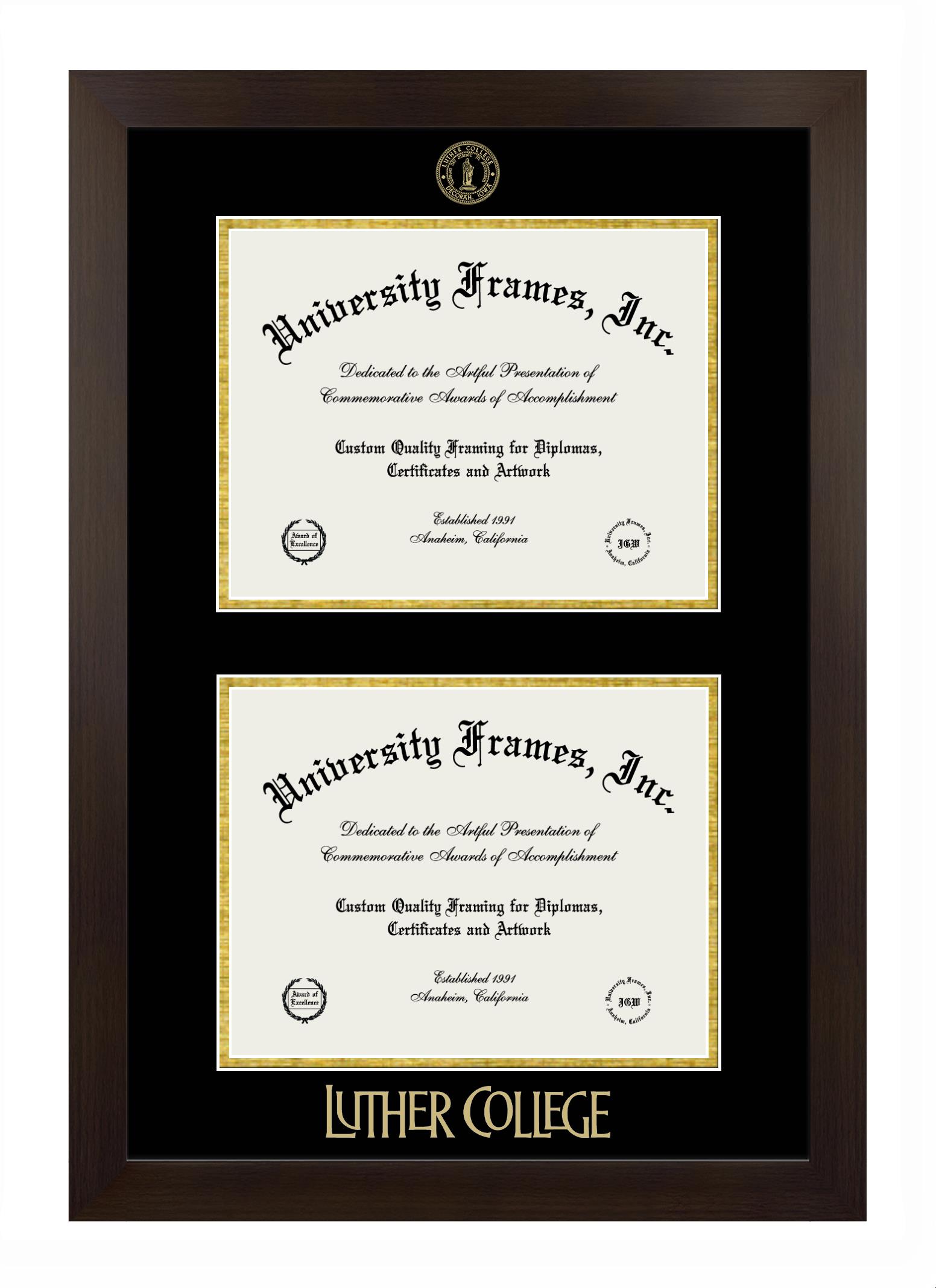 Hey there, Luther College grads. Congratulations for your accomplishment! Since you’re here, you must be looking for a professional graduation frame to preserve and showcase your Luther College diploma. Or, you may be looking for a diploma frame for another grad. We at University Frames, create the finest diploma frames and are licensed with Luther College. Each of our degree frames is handcrafted in the US using the finest hardwood and with an exemplary level of attention to detail. Customize your diploma frame using our easy and intuitive online design tool.