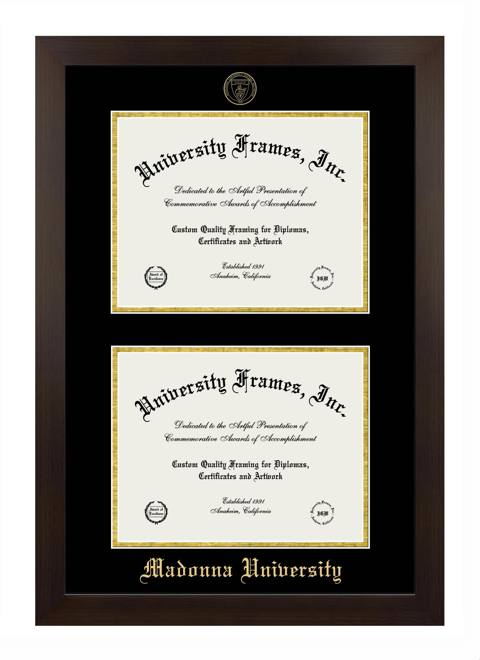 Hey there, Madonna University grads. Congratulations for your accomplishment! Since you’re here, you must be looking for a professional graduation frame to preserve and showcase your Madonna University diploma. Or, you may be looking for a diploma frame for another grad. We at University Frames, create the finest diploma frames and are licensed with Madonna University . Each of our degree frames is handcrafted in the US using the finest hardwood and with an exemplary level of attention to detail. Customize your diploma frame using our easy and intuitive online design tool.
