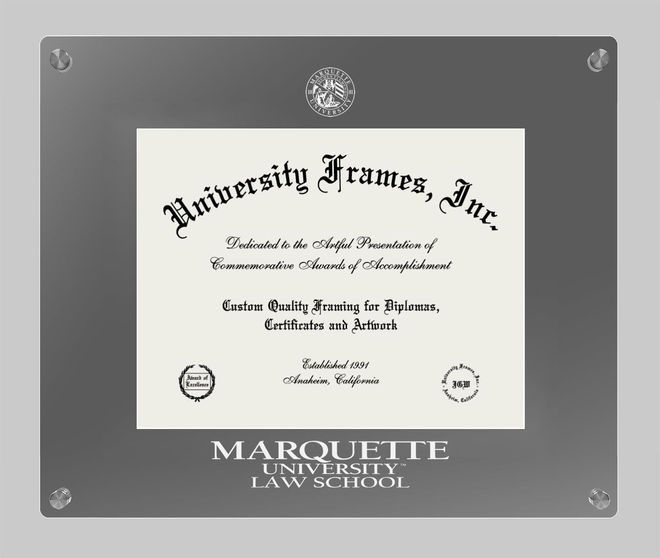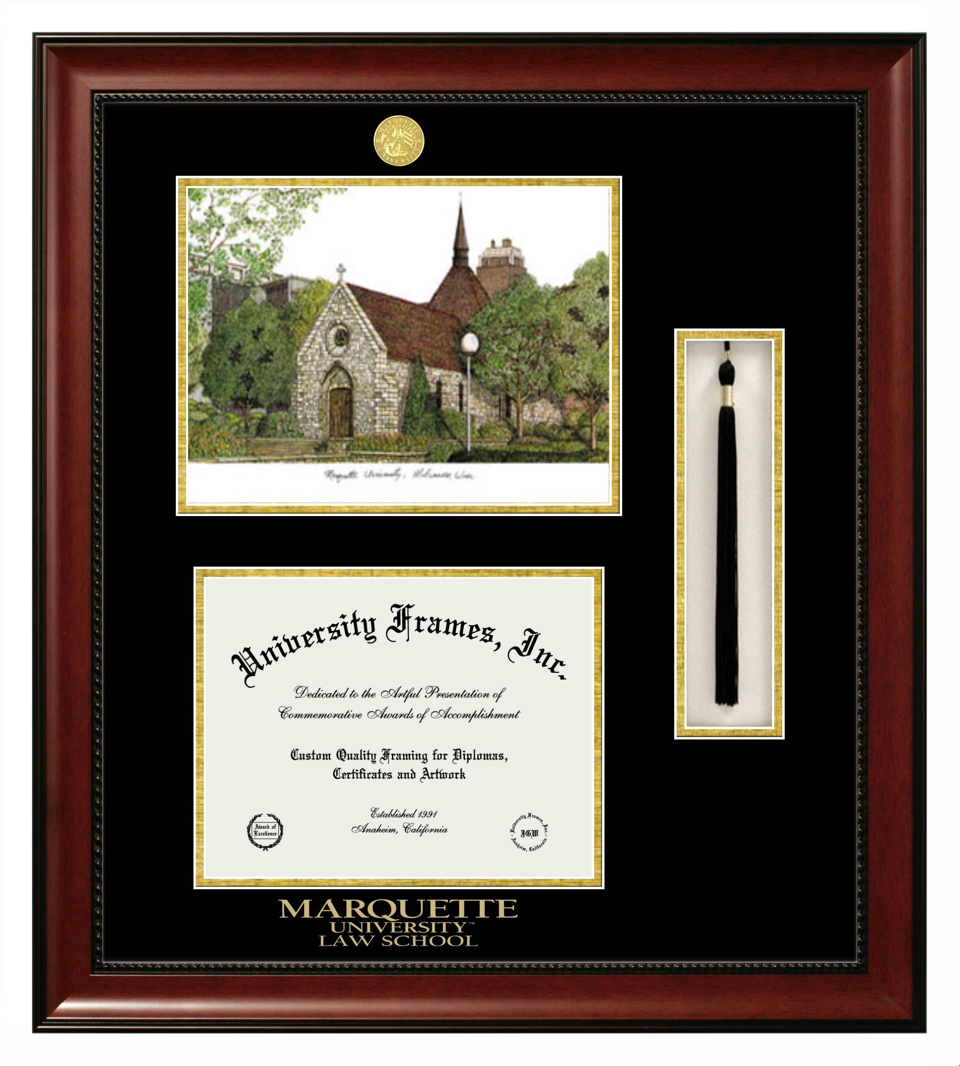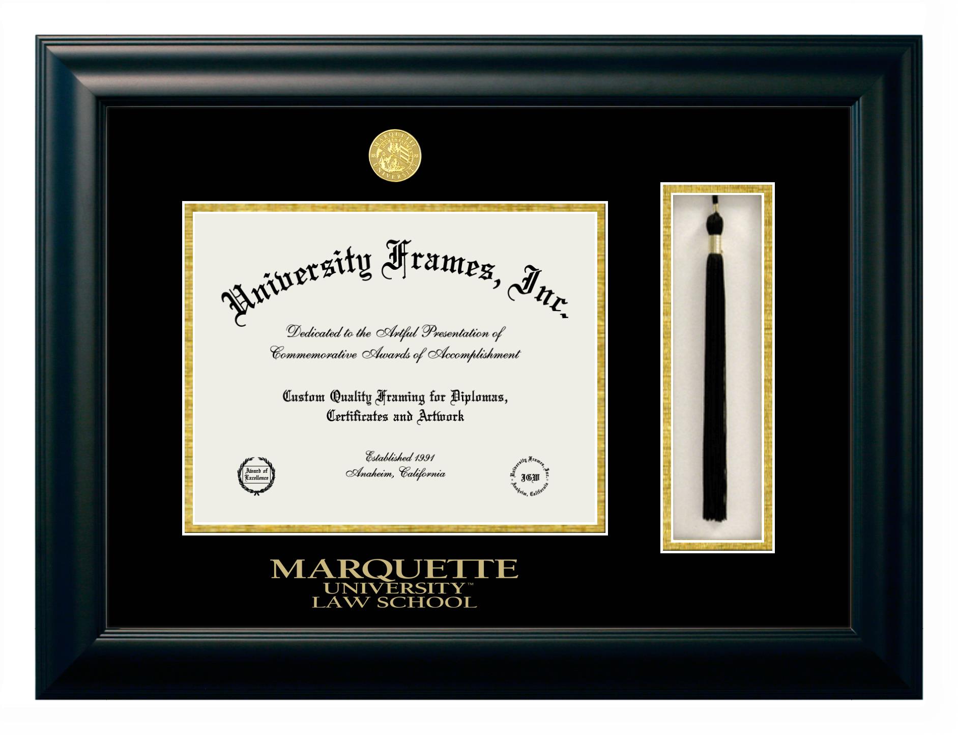 Hey there, Marquette University Law School grads. Congratulations for your accomplishment! Since you’re here, you must be looking for a professional graduation frame to preserve and showcase your Marquette University Law School diploma. Or, you may be looking for a diploma frame for another grad. We at University Frames, create the finest diploma frames and are licensed with Marquette University Law School. Each of our degree frames is handcrafted in the US using the finest hardwood and with an exemplary level of attention to detail. Customize your diploma frame using our easy and intuitive online design tool.