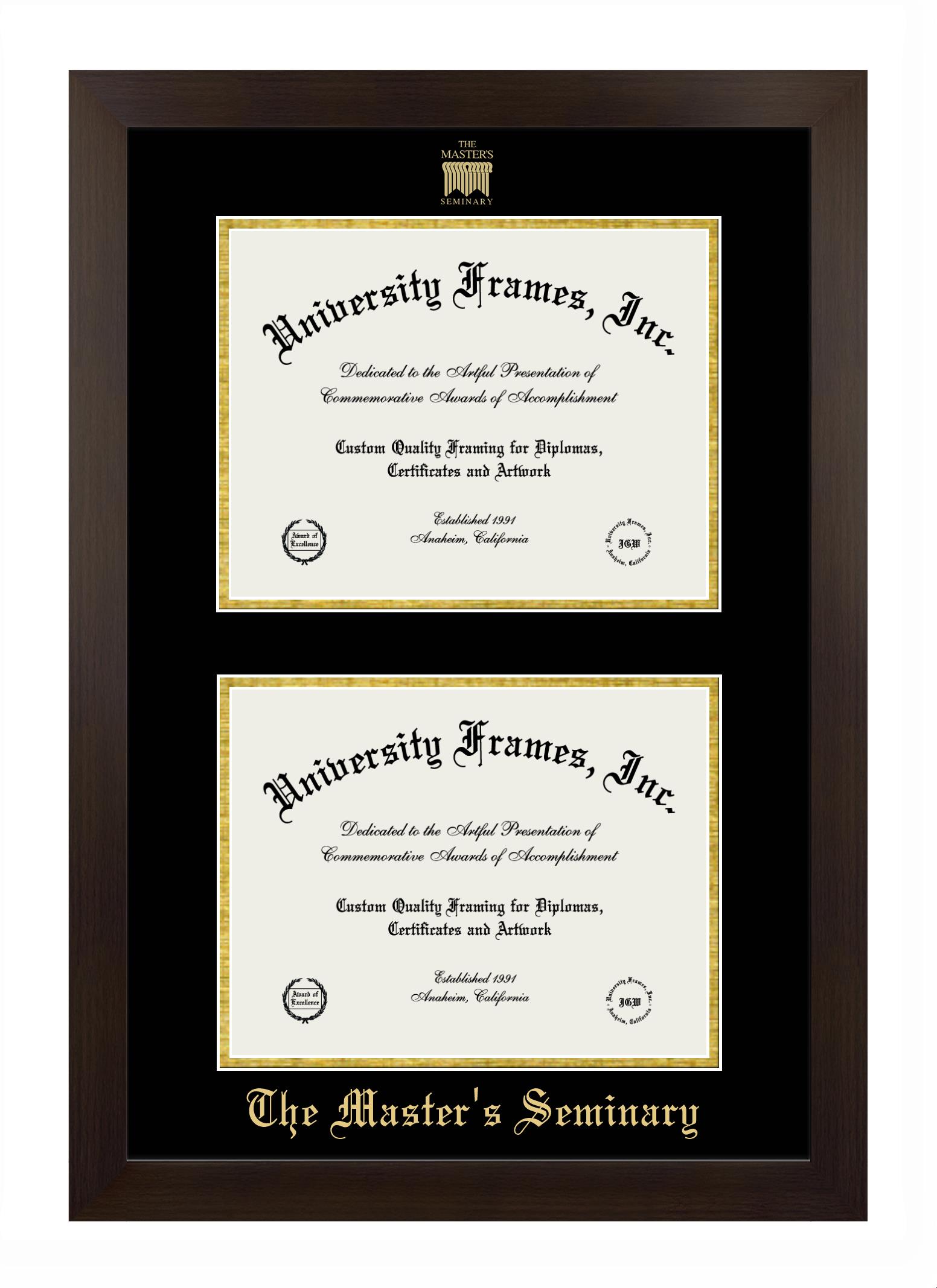 Hey there, Master's Seminary grads. Congratulations for your accomplishment! Since you’re here, you must be looking for a professional graduation frame to preserve and showcase your Master's Seminary diploma. Or, you may be looking for a diploma frame for another grad. We at University Frames, create the finest diploma frames and are licensed with Master's Seminary. Each of our degree frames is handcrafted in the US using the finest hardwood and with an exemplary level of attention to detail. Customize your diploma frame using our easy and intuitive online design tool.