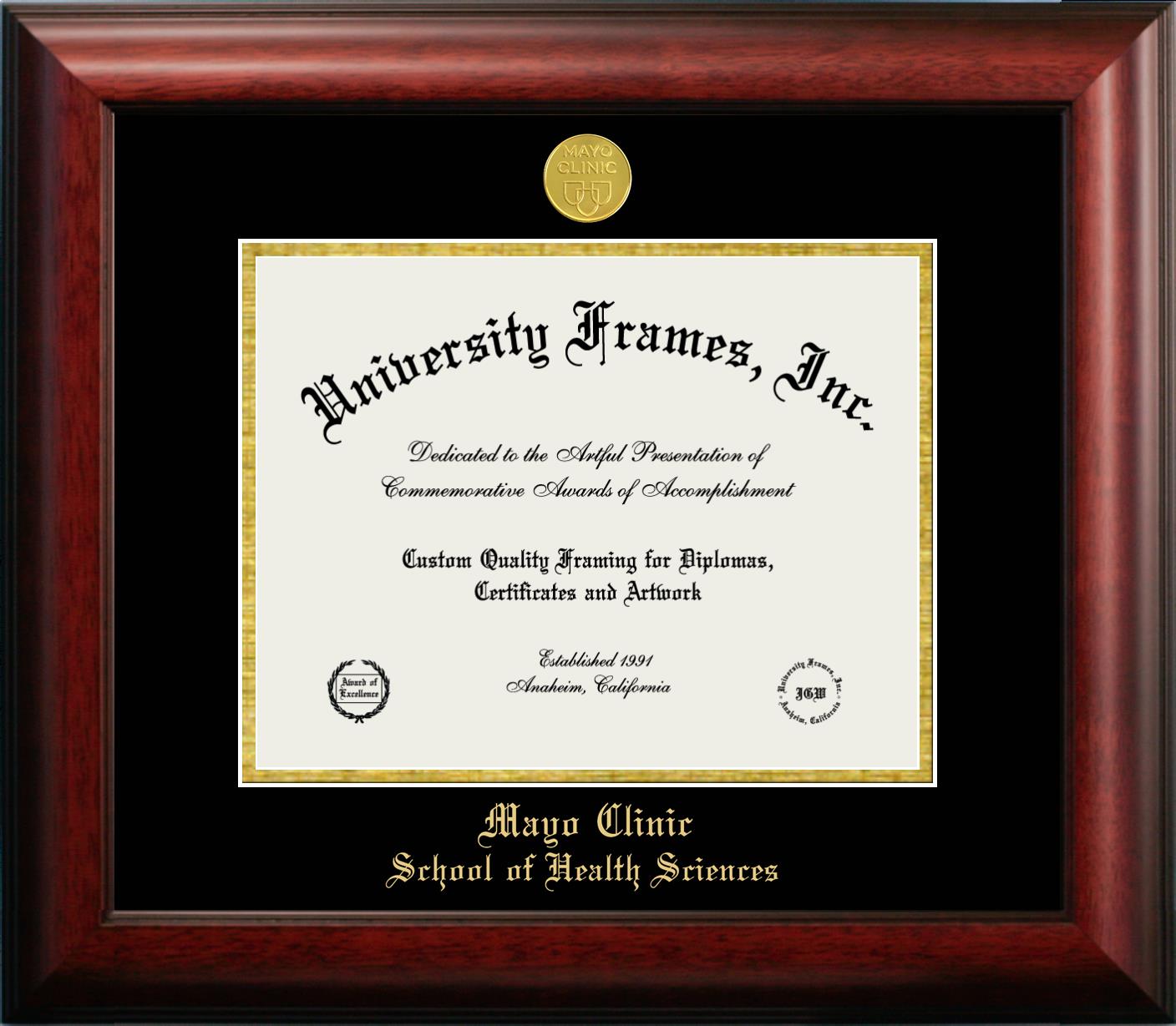 Hey there, Mayo Clinic School of Health Sciences grads. Congratulations for your accomplishment! Since you’re here, you must be looking for a professional graduation frame to preserve and showcase your Mayo Clinic School of Health Sciences diploma. Or, you may be looking for a diploma frame for another grad. We at University Frames, create the finest diploma frames and are licensed with Mayo Clinic School of Health Sciences. Each of our degree frames is handcrafted in the US using the finest hardwood and with an exemplary level of attention to detail. Customize your diploma frame using our easy and intuitive online design tool.