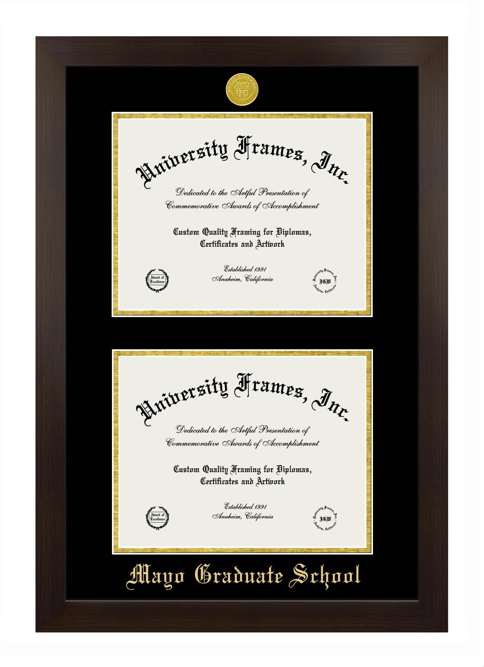 Hey there, Mayo Graduate School (former name) grads. Congratulations for your accomplishment! Since you’re here, you must be looking for a professional graduation frame to preserve and showcase your Mayo Graduate School (former name) diploma. Or, you may be looking for a diploma frame for another grad. We at University Frames, create the finest diploma frames and are licensed with Mayo Graduate School (former name). Each of our degree frames is handcrafted in the US using the finest hardwood and with an exemplary level of attention to detail. Customize your diploma frame using our easy and intuitive online design tool.