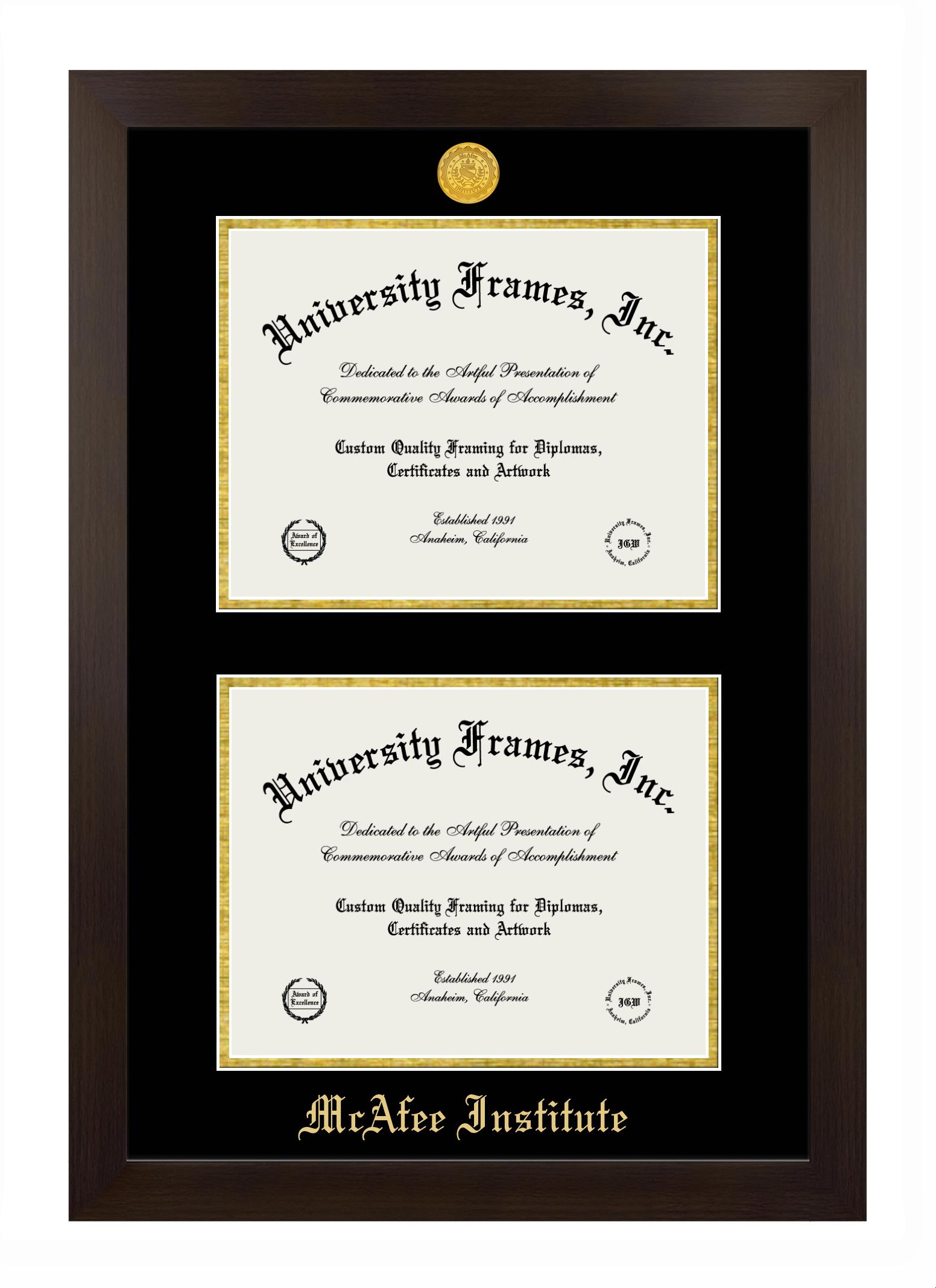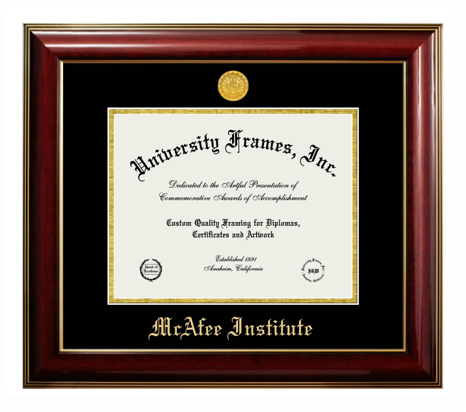 Hey there, McAfee Institute grads. Congratulations for your accomplishment! Since you’re here, you must be looking for a professional graduation frame to preserve and showcase your McAfee Institute diploma. Or, you may be looking for a diploma frame for another grad. We at University Frames, create the finest diploma frames and are licensed with McAfee Institute. Each of our degree frames is handcrafted in the US using the finest hardwood and with an exemplary level of attention to detail. Customize your diploma frame using our easy and intuitive online design tool.