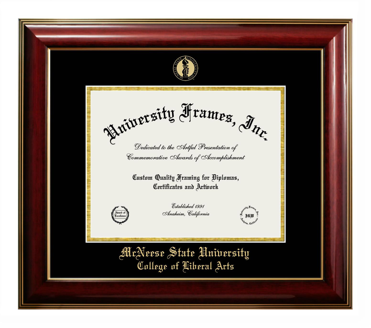 Hey there, McNeese State University College of Liberal Arts grads. Congratulations for your accomplishment! Since youโre here, you must be looking for a professional graduation frame to preserve and showcase your McNeese State University College of Liberal Arts diploma. Or, you may be looking for a diploma frame for another grad. We at University Frames, create the finest diploma frames and are licensed with McNeese State University College of Liberal Arts. Each of our degree frames is handcrafted in the US using the finest hardwood and with an exemplary level of attention to detail. Customize your diploma frame using our easy and intuitive online design tool.