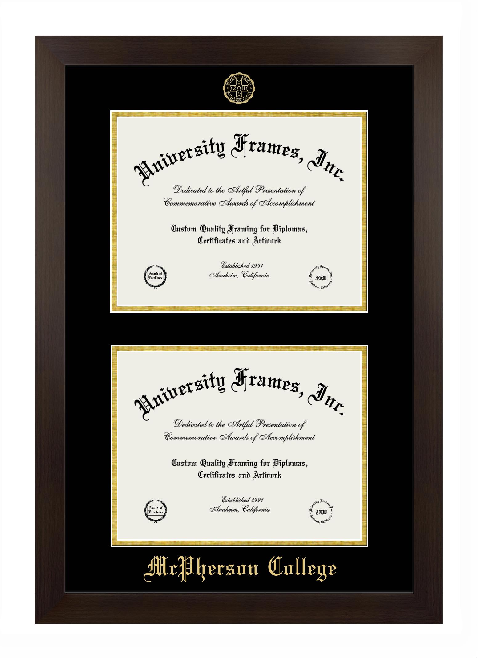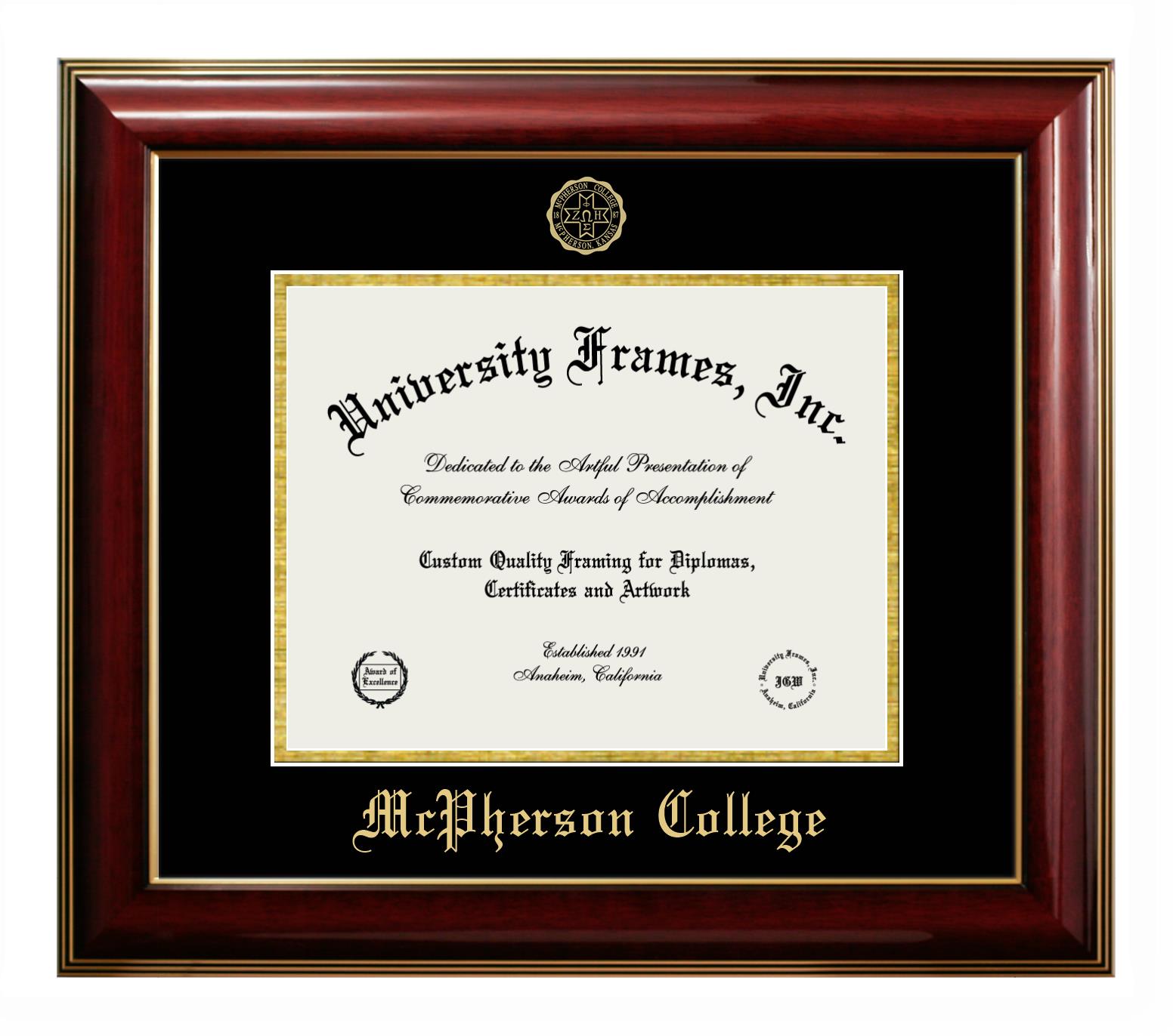 Hey there, McPherson College grads. Congratulations on your accomplishment! Earning a degree is an achievement to be cherished forever. At University Frames, we create professional diploma frames for McPherson College grads and alumni, offering them an elegant and impressive way to treasure their hard-earned diploma for a lifetime. Each of our degree frames is handcrafted in the US and custom-sized to fit the official McPherson College diplomas. Customize your graduation frame using our easy and intuitive online design tool.