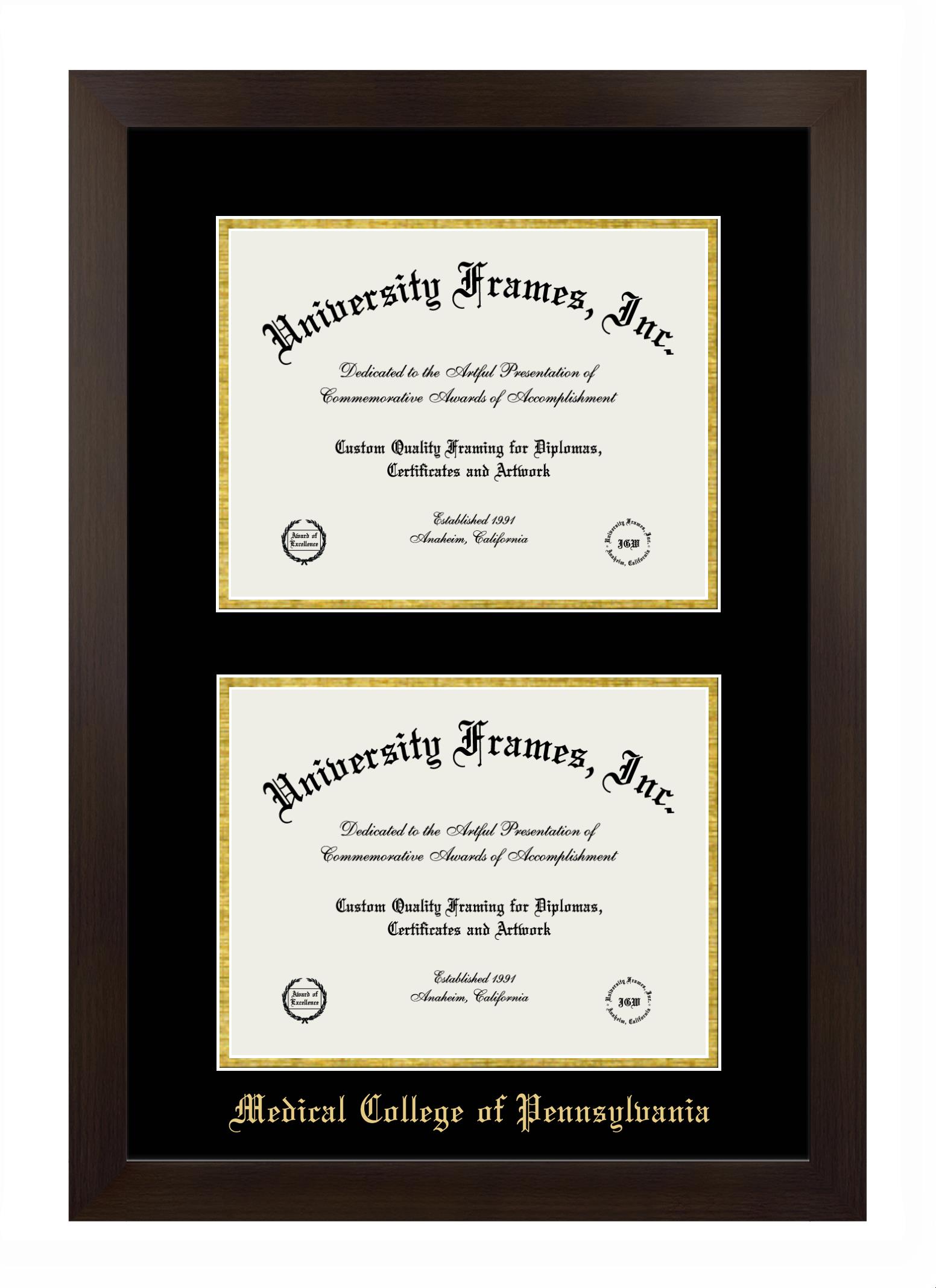 Hey there, Medical College of Pennsylvania grads. Congratulations on your accomplishment! Earning a degree is an achievement to be cherished forever. At University Frames, we create professional diploma frames for Medical College of Pennsylvania grads and alumni, offering them an elegant and impressive way to treasure their hard-earned diploma for a lifetime. Each of our degree frames is handcrafted in the US and custom-sized to fit the official Medical College of Pennsylvania diplomas. Customize your graduation frame using our easy and intuitive online design tool.