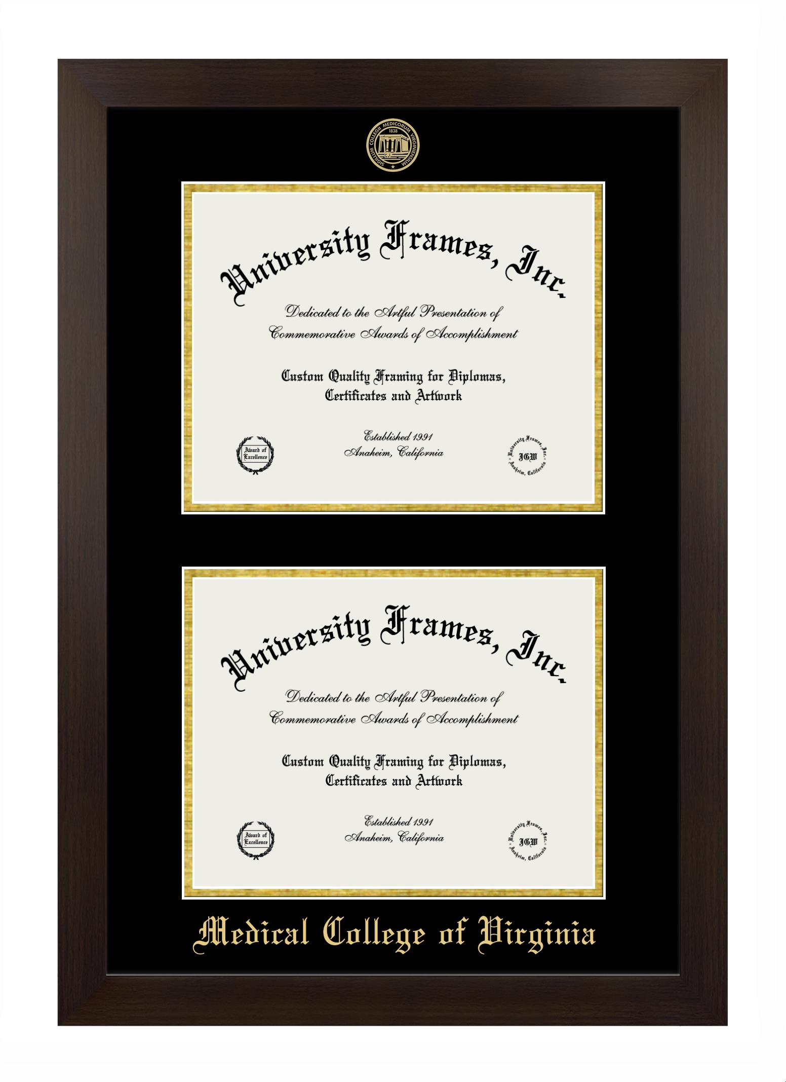 Hey there, Medical College of Virginia grads. Congratulations on your accomplishment! Earning a degree is an achievement to be cherished forever. At University Frames, we create professional diploma frames for Medical College of Virginia grads and alumni, offering them an elegant and impressive way to treasure their hard-earned diploma for a lifetime. Each of our degree frames is handcrafted in the US and custom-sized to fit the official Medical College of Virginia diplomas. Customize your graduation frame using our easy and intuitive online design tool.