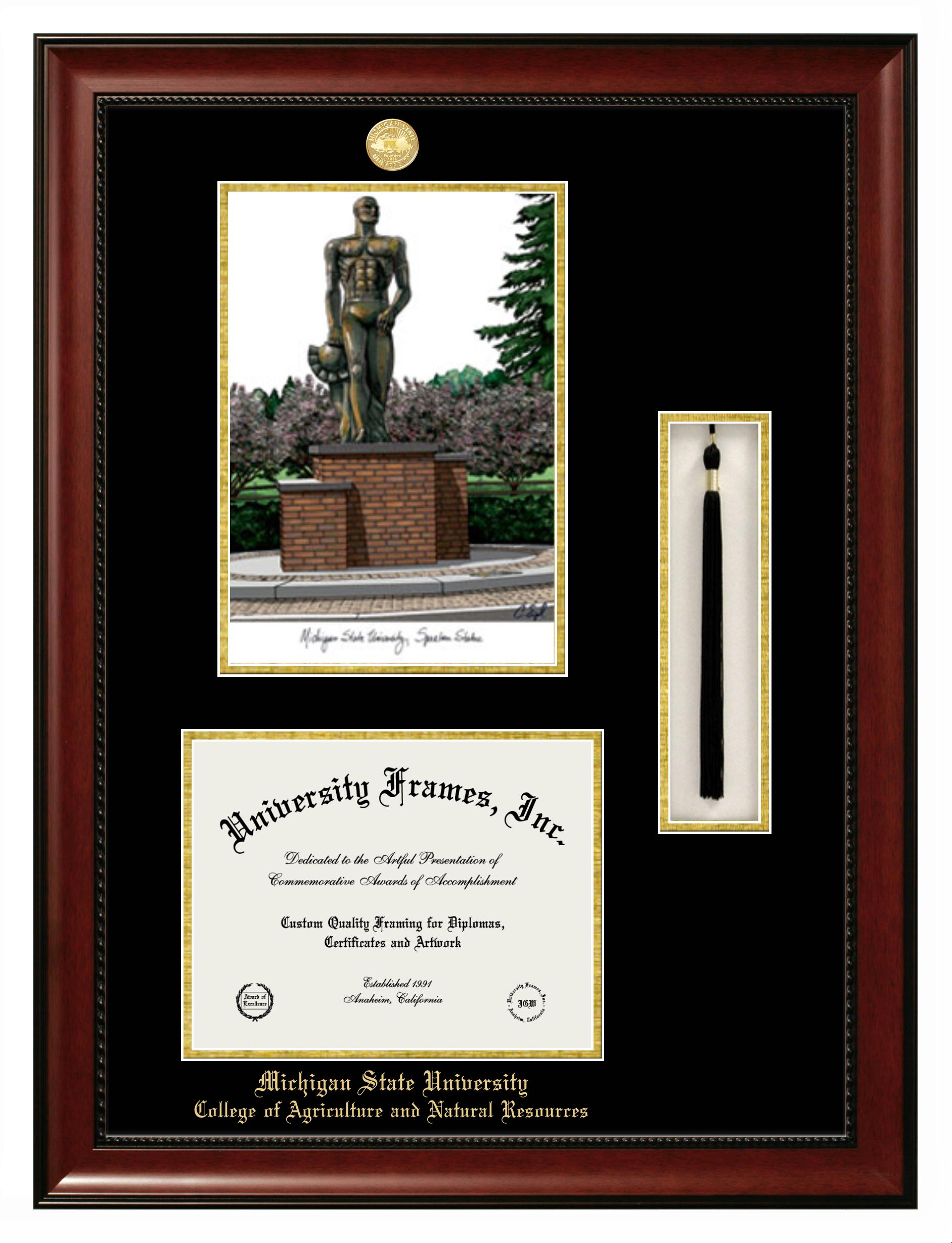 Hey there, Michigan State University College of Agriculture and Natural Resources grads. Congratulations on your accomplishment! Earning a degree is an achievement to be cherished forever. At University Frames, we create professional diploma frames for Michigan State University College of Agriculture and Natural Resources grads and alumni, offering them an elegant and impressive way to treasure their hard-earned diploma for a lifetime. Each of our degree frames is handcrafted in the US and custom-sized to fit the official Michigan State University College of Agriculture and Natural Resources diplomas. Customize your graduation frame using our easy and intuitive online design tool.
