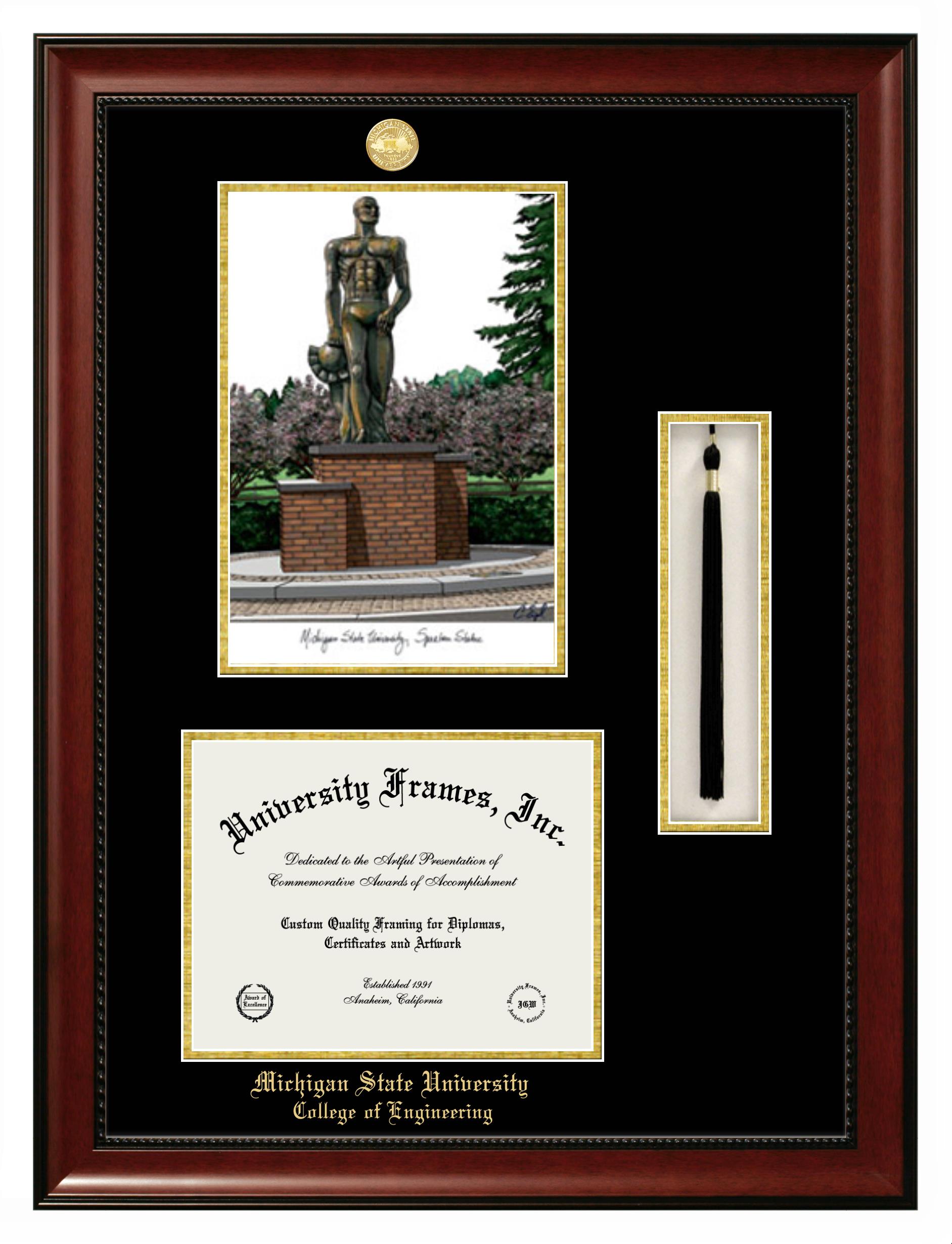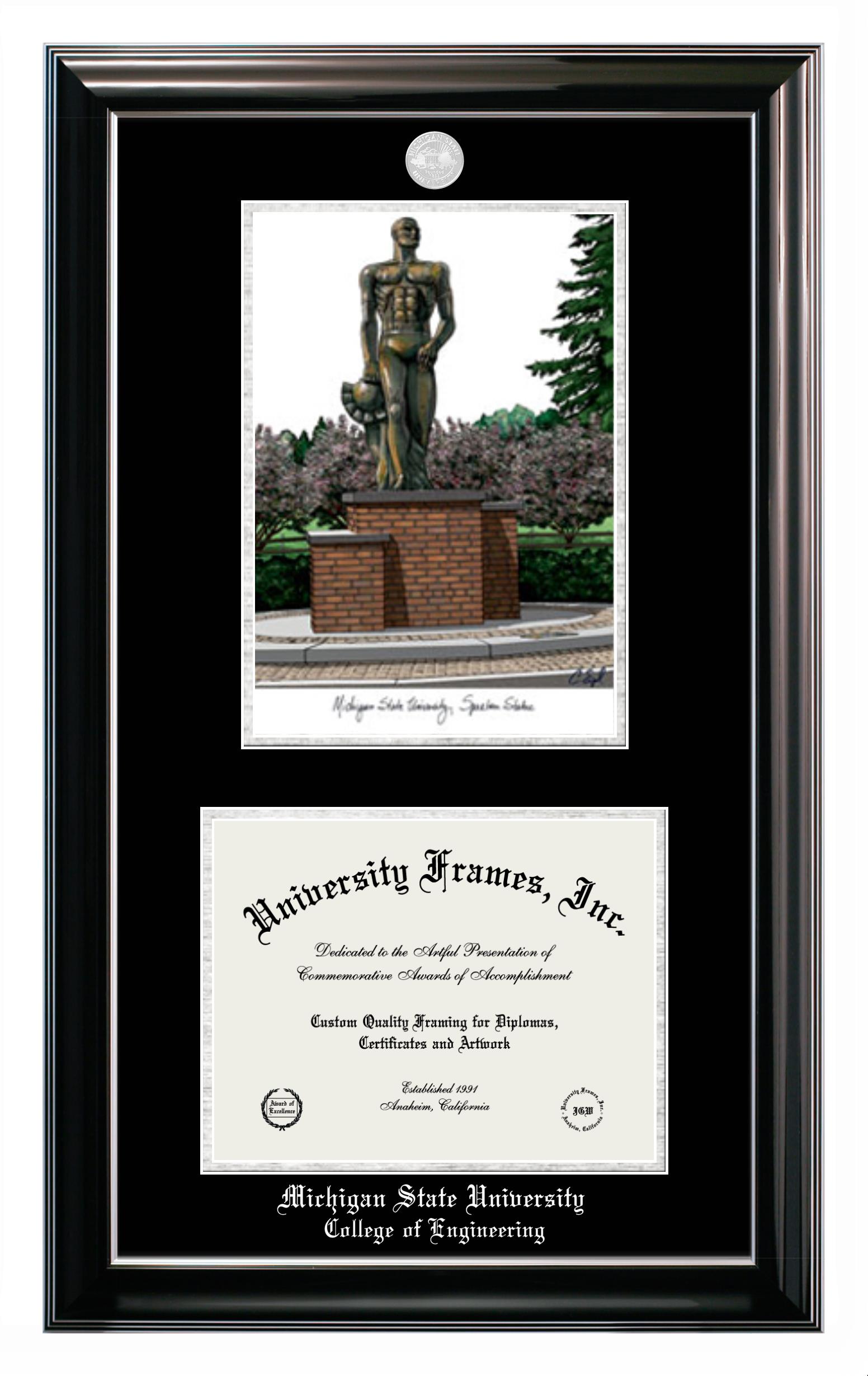 Hey there, Michigan State University College of Engineering grads. Congratulations on your accomplishment! Earning a degree is an achievement to be cherished forever. At University Frames, we create professional diploma frames for Michigan State University College of Engineering grads and alumni, offering them an elegant and impressive way to treasure their hard-earned diploma for a lifetime. Each of our degree frames is handcrafted in the US and custom-sized to fit the official Michigan State University College of Engineering diplomas. Customize your graduation frame using our easy and intuitive online design tool.