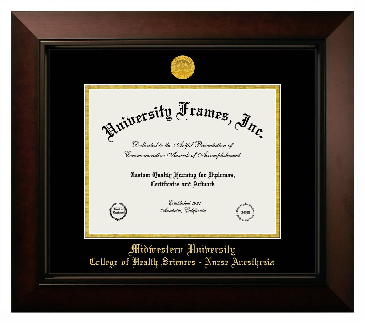 Hey there, Midwestern University College of Health Sciences - Nurse Anesthesia grads. Congratulations on your accomplishment! Earning a degree is an achievement to be cherished forever. At University Frames, we create professional diploma frames for Midwestern University College of Health Sciences - Nurse Anesthesia grads and alumni, offering them an elegant and impressive way to treasure their hard-earned diploma for a lifetime. Each of our degree frames is handcrafted in the US and custom-sized to fit the official Midwestern University College of Health Sciences - Nurse Anesthesia diplomas. Customize your graduation frame using our easy and intuitive online design tool.