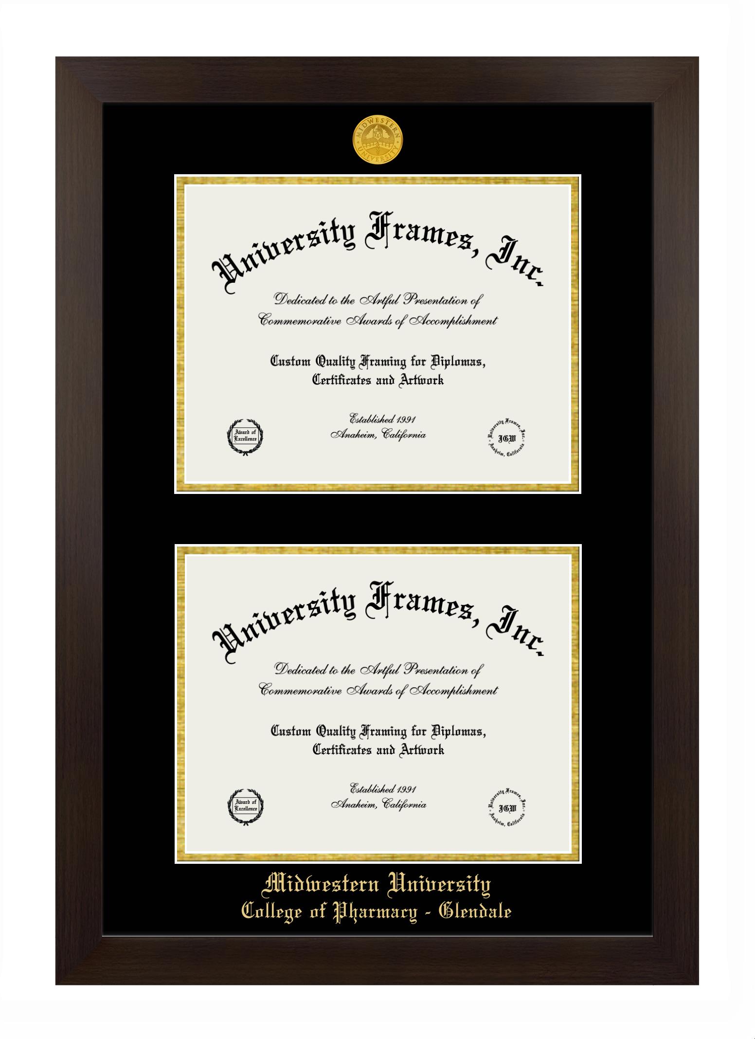 Hey there, Midwestern University College of Pharmacy - Glendale (Glendale, AZ) grads. Congratulations on your accomplishment! Earning a degree is an achievement to be cherished forever. At University Frames, we create professional diploma frames for Midwestern University College of Pharmacy - Glendale (Glendale, AZ) grads and alumni, offering them an elegant and impressive way to treasure their hard-earned diploma for a lifetime. Each of our degree frames is handcrafted in the US and custom-sized to fit the official Midwestern University College of Pharmacy - Glendale (Glendale, AZ) diplomas. Customize your graduation frame using our easy and intuitive online design tool.