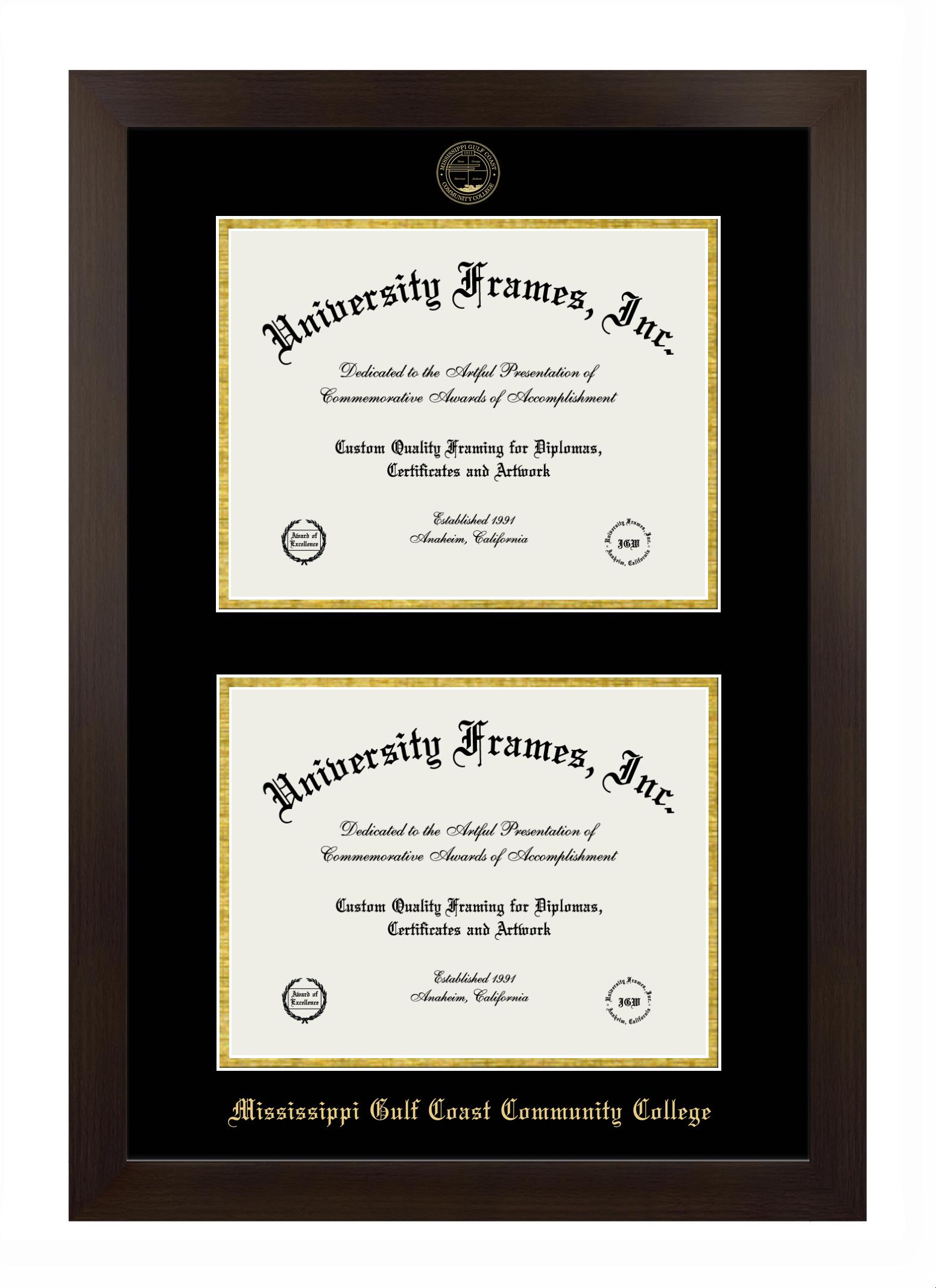 Hey there, Mississippi Gulf Coast Community College grads. Congratulations on your accomplishment! Earning a degree is an achievement to be cherished forever. At University Frames, we create professional diploma frames for Mississippi Gulf Coast Community College grads and alumni, offering them an elegant and impressive way to treasure their hard-earned diploma for a lifetime. Each of our degree frames is handcrafted in the US and custom-sized to fit the official Mississippi Gulf Coast Community College diplomas. Customize your graduation frame using our easy and intuitive online design tool.