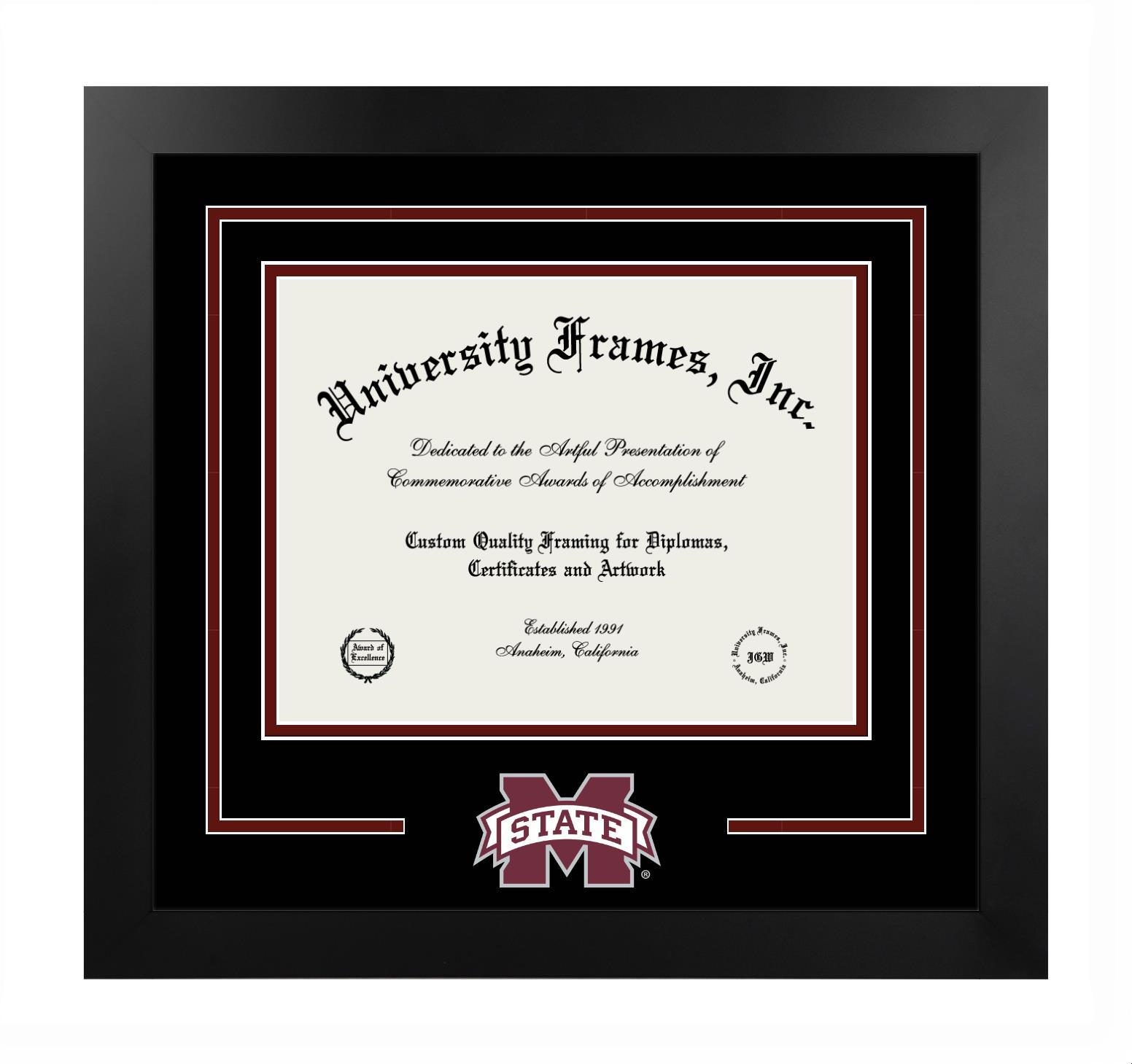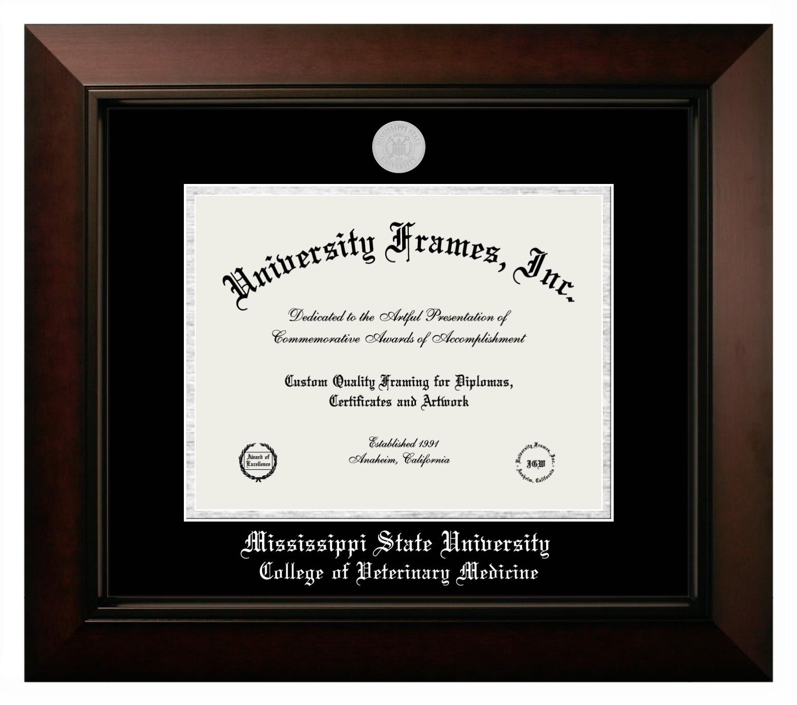 Hey there, Mississippi State University College of Veterinary Medicine grads. Congratulations on your accomplishment! Earning a degree is an achievement to be cherished forever. At University Frames, we create professional diploma frames for Mississippi State University College of Veterinary Medicine grads and alumni, offering them an elegant and impressive way to treasure their hard-earned diploma for a lifetime. Each of our degree frames is handcrafted in the US and custom-sized to fit the official Mississippi State University College of Veterinary Medicine diplomas. Customize your graduation frame using our easy and intuitive online design tool.