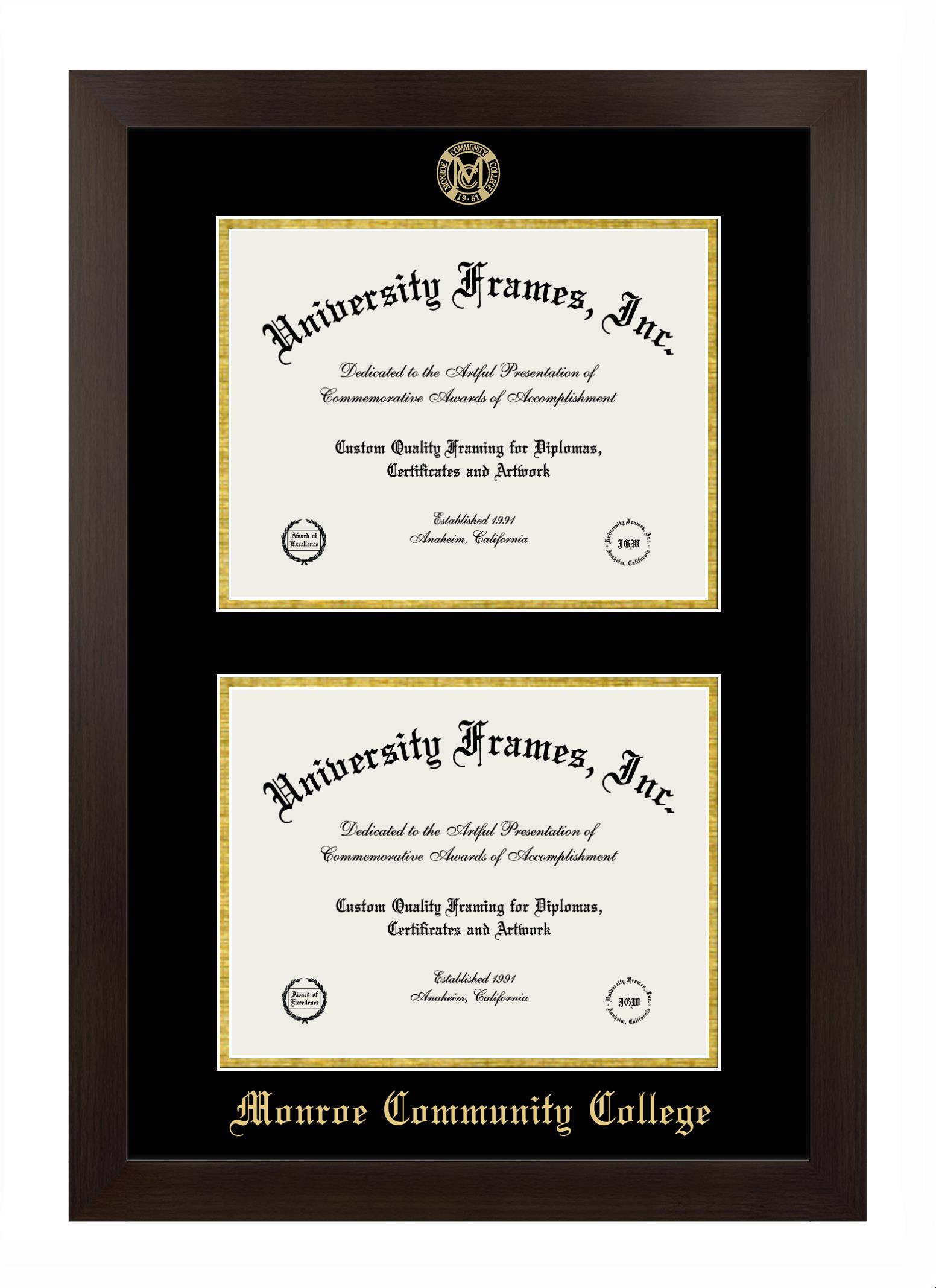Hey there, Monroe Community College grads. Congratulations on your accomplishment! Earning a degree is an achievement to be cherished forever. At University Frames, we create professional diploma frames for Monroe Community College grads and alumni, offering them an elegant and impressive way to treasure their hard-earned diploma for a lifetime. Each of our degree frames is handcrafted in the US and custom-sized to fit the official Monroe Community College diplomas. Customize your graduation frame using our easy and intuitive online design tool.