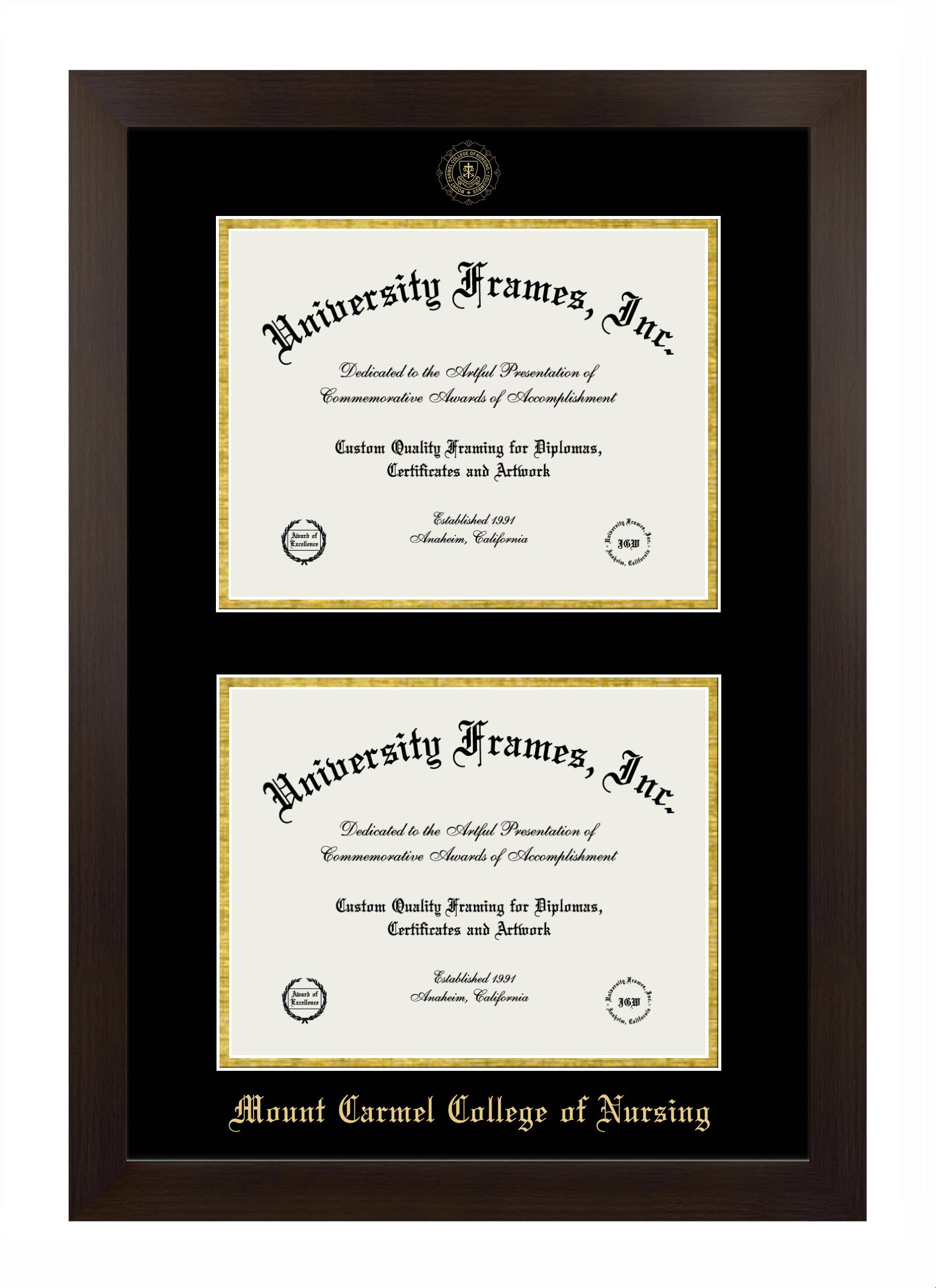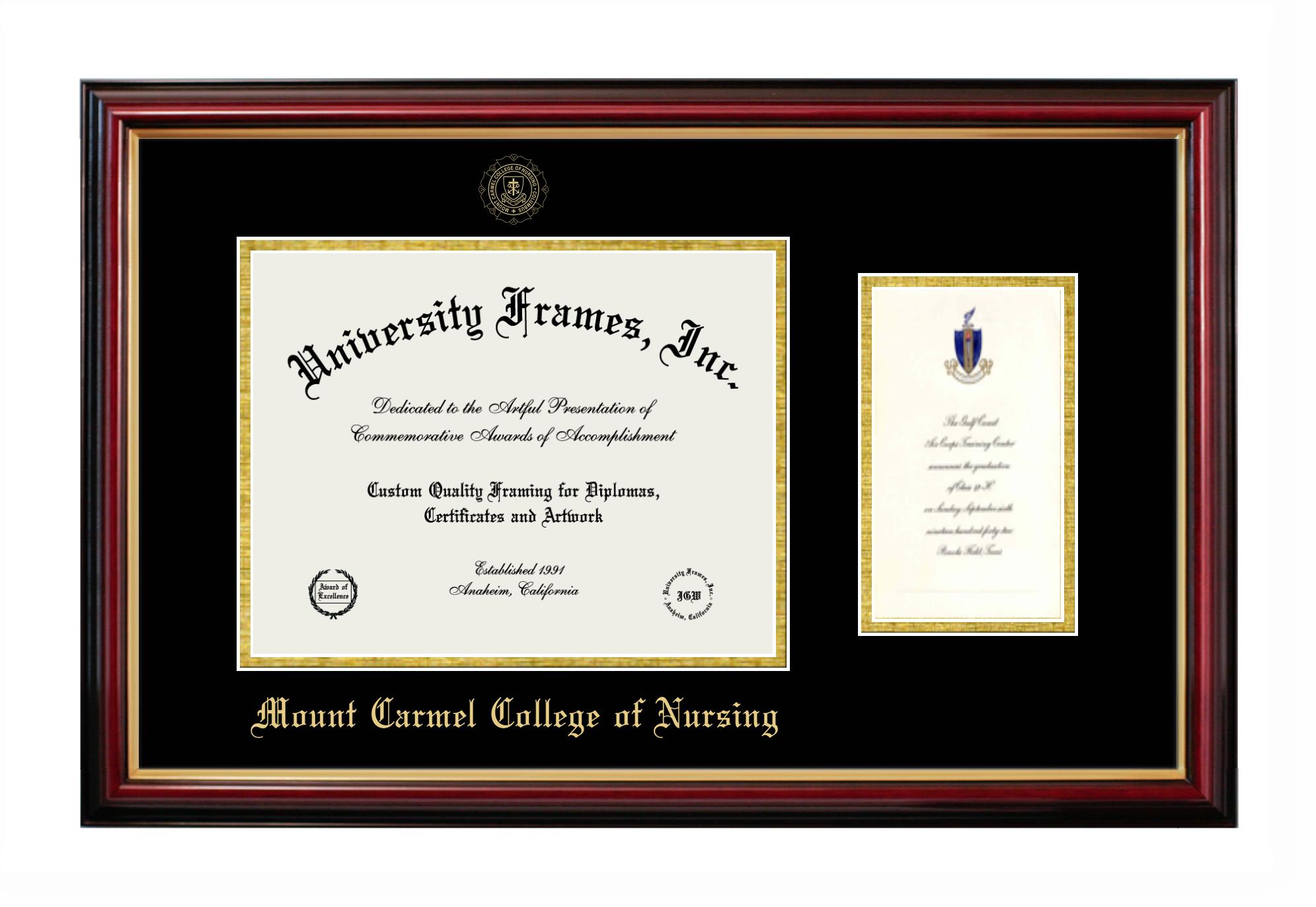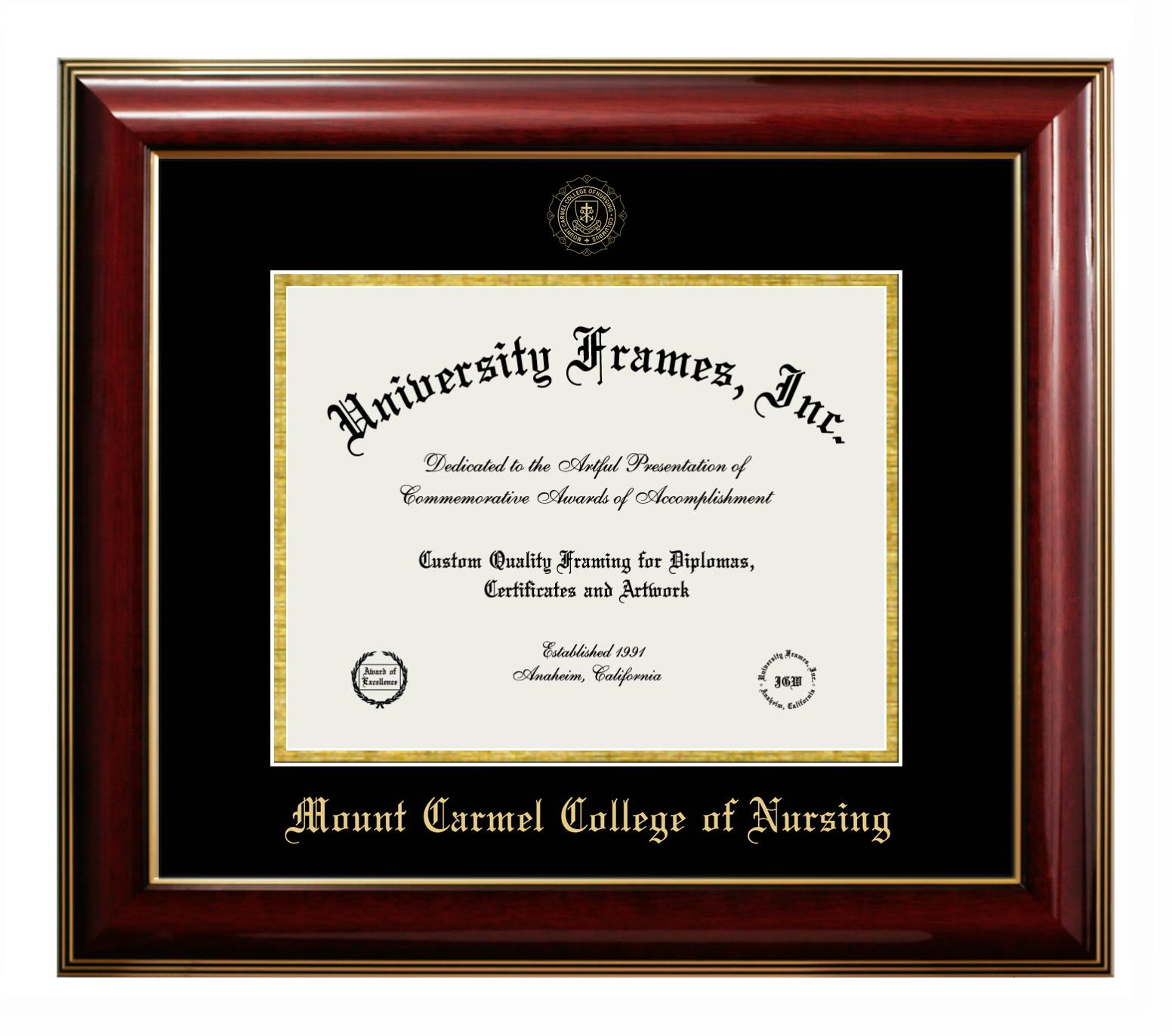 Hey there, Mount Carmel College of Nursing grads. Congratulations on your accomplishment! Earning a degree is an achievement to be cherished forever. At University Frames, we create professional diploma frames for Mount Carmel College of Nursing grads and alumni, offering them an elegant and impressive way to treasure their hard-earned diploma for a lifetime. Each of our degree frames is handcrafted in the US and custom-sized to fit the official Mount Carmel College of Nursing diplomas. Customize your graduation frame using our easy and intuitive online design tool.